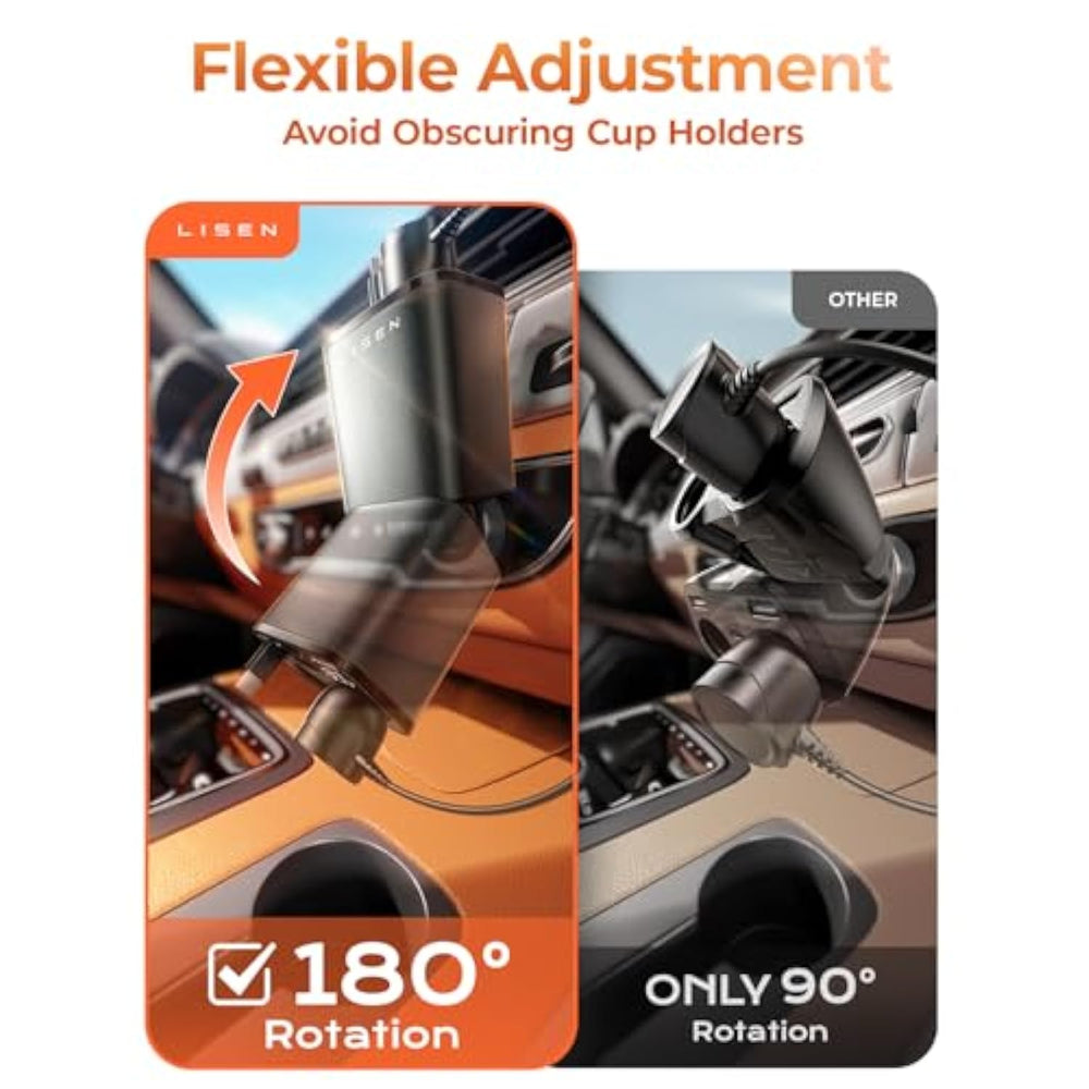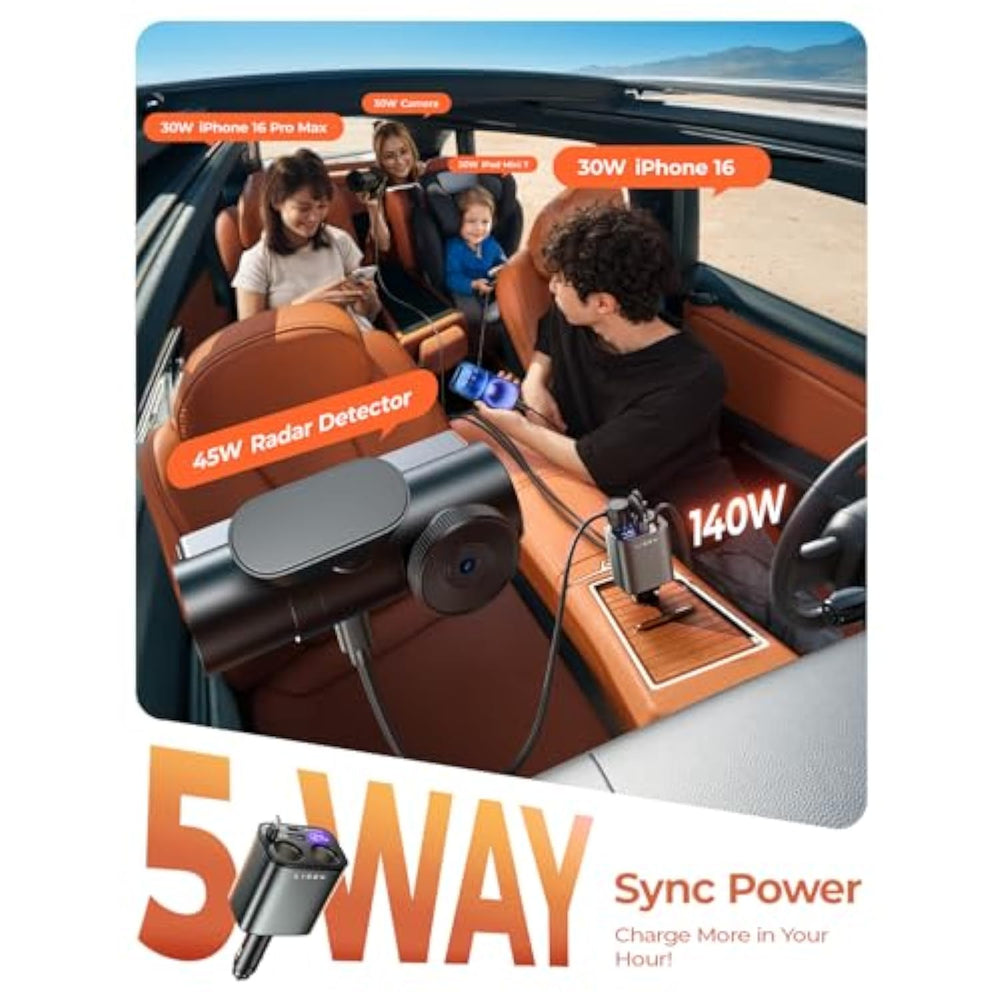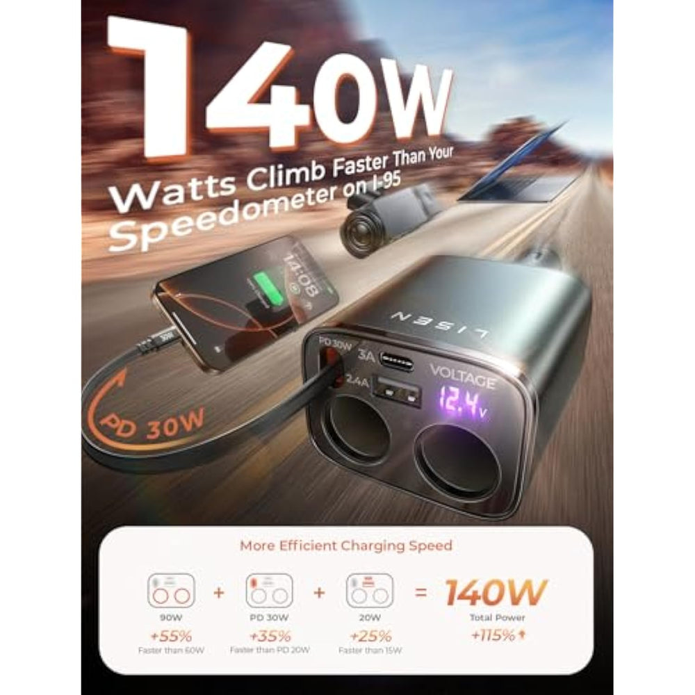 | ?: Charge More Than 7 Devices: Cigarette Lighter Splitter Features A Pd30W Type-C Cable, 90W 12-Volt Dual Cigarette Lighter Adapter, And 20W Usba And Usbc Ports, Solving The Hassle Of Not Having Enough Ports In Your Car To Run A Wide Range Of Electronic Devices Perfectly. ?Note: Please Do Not Connect The Car Refrigerator, Electric Car Defroster Hooked, Seat Heater, Vacuum Cleaner And Other Super Power Devices? | | ?: Pd30W Retractable Cable And Led Voltage Display: 5-In-1 Cigarette Lighter Splitter Is Designed With A Retractable Cord That Stretches Up To 31.5 Inches. This Helps Clean Up Some Of The Mess, Just Make Sure You Have Clearance In Front Of The Cigarette Lighter Plug. Additionally, The Led Smart Monitor Voltage Lets You See The Condition Of Your Car'S Circuit System And Battery, With Safe Voltages Ranging From 12V-14.6V For 12V Cars And Between 19.2V-28.4V For 24V Trucks | | Iii: Excellent Aluminum Alloy And 10A Fuse: Car Cigarette Lighter Splitter Is Made Of Abs Flame Retardant Material And Aluminum Alloy Lightweight Material For Better Heat Resistance, Which Will Be Heavenly For Road Trips. Also, The Car Charger Splitter Comes With 1 Extra 10A Replaceable Fuse, So If There Is A Fuse Blowing Situation, You Can Easily Replace It For Safe Driving. ?Note: Ensure That There Is Enough Space Around The Retractable Car Charger For Optimal Use? | | ?: Upd 180° Adjustable Design: The Retractable Car Charger Is A Game Changer For Anyone Who Needs Efficient Power Management. The Extra Adjustable Angle Will Be The Icing On The Cake, No Need To Worry About The Dual Cigarette Lighter Adapters Getting In The Way Of The Cup Holder Or Gear Shifter. ?Note: The Distance Between The 2 12V Splitters Is 0.33 Inches, Please Use The Appropriate Size Expandable Charger To Plug In And Connect For Use To Avoid Interfering With The Other Ports!? | | ?: Great For Long Trips: Car Cigarette Lighter Splitter For 12-24V Car Is Compatible With Car Recorder, Radar Detector, Car Baby Camera, Gps, Digital Camera, Iphone 16/15, Samsung Galaxy S24Ultra /Google Pixel 7, Ipad Pro, Ipad Air, Macbook Pro, Gopro, Tablet, Dvd Player And Other Devices. Package Includes 1*Cigarette Lighter Adapter, 1* Replaceable 10A Fuse, 1* Reference Manual, 2 Years | |