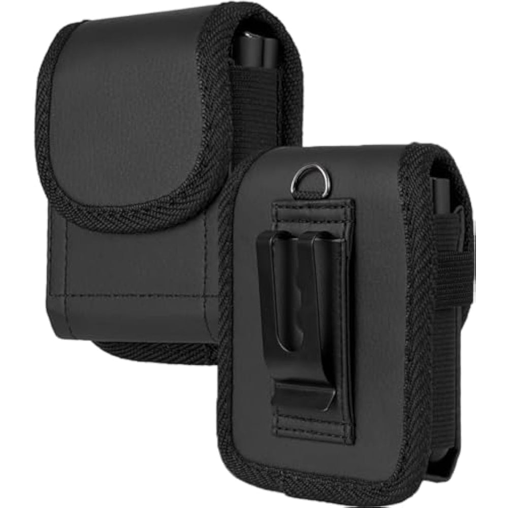 | CASE COMPATIBLE: Premium Vegan Leather Pouch Case with Rugged Nylon Trim Keeps Phone Protected and Concealed. Slightly Oversized Design to Accommo Your Phone Case/Cover | | SECURE: Hidden/Quiet Magnetic Closure Keeps Case Closed Shut and Secure. Also Features Elastic Side Slot for Short Pen. Free Your Pockets and Carry Your Phone in Comfort at Your Side with Quick Access - Like an Old Western, You'll Be Quick on the Draw! | | STRONG CLIP: Fixed Metal Clip with Low Profile Secures to Belt or Waistband | | HARNESS: Rear Sleeve/Loop to Thread Belt for Extreme Stability Like a Harness | | FITMENT: Designed for the RAZR and Z Flip Series. Compatible Models Include: RAZR Ultra 2025. RAZR+ 2024, RAZR 2024, RAZR+ 2023, RAZR 2023, RAZR 2020, Z Flip, Z Flip3, Z Flip4, Z Flip5, Z Flip 6, Huawei P50 Pocket | |