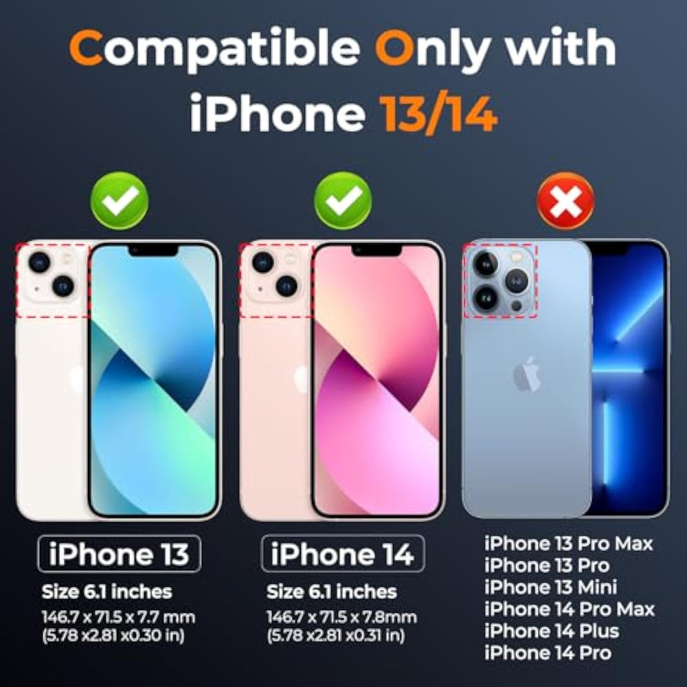 | ?Compatible With?Armor Case With Sliding Camera Cover Specially Designed For Iphone 13 / 14 6.1 Inch. Not Fit For Other Device! The Precise Cut Out Fits Each Button, Camera, Speakers And Ports Precisely, Easy To Press And Access. ??Notice: Due To The Metal Ring On The Back, The Case Will Not Work With Wireless Charging Function | | ?Military Grade Protection?Double Layer Shockproof Case Made By Tpu And Pc.This Multi Layer Cushion Structure Provide Additional Shock Absorption Protection. Certified By The Military Standard. The Flexible Tpu Interior Absorbs Impacts From Inside. This Case Has Undergone Rigorous Military Standard Testing, Withstanding Over 8,000+ Drop Tests From Up To 12 Feet | | ?Camera And Screen Protection?Sliding Camera Cover Protect Phone Camera Lens From Getting Scratched And Scuffed. Subtly Enhanced 2 Mm Screen Lips And Glass Screen Protector Provide The Screen Extra And Comprehensive Protection. Ensuring Every Aspect Of Your Phone Is Protected With Uniquely | | ?Magnetic Ring Kickstand?The Built-In Magnetic Kickstand Allows For 360° Rotation, Providing Versatile Viewing Angles For Both Vertical And Horizontal Orientations. It Can Be Used As Ring Holder And Release Your Hand When Watching Video. The Metal Patch Back Easily Attach To Magnetic Car Mount,Very Convenient During Driving Time For Navigation. You Will Love How Convenient It Is With Such Powerful Function | | ?What'S In The Package? The Package Come With 1 Pack Phone Case, 2 Pack Tempered Glass Screen Protectors And 2 Pack Cleaning Kits | | ?After Sales Service? We Provide Long-Time Friendly Service. Please