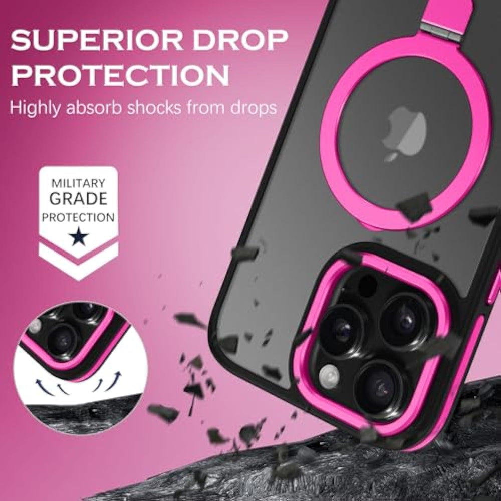 | ?Compatible With Iphone 16 Pro Max 6.9"?: This Hot Pink Neon Pink Black Ultra Thin Translucent Mobile Phone Case Is For Apple Iphone 16 Pro Max 6.9 Inch (2024 Released), Not Compatible With Other Versions. No Screen Protector. | | ?Strong Magsafe Compatible?Built In Magnetic Ring That Is Compatible With Magsafe Enabled Accessories Such As Wireless Chargers, Car Mounts, And Magnetic Card Holders. Ensures A Strong Magnetic Connection. | | ?Screen And Camera Protection?The Camera Adopts High-Quality Metal Frame, 0,5Mm Raised Camera Lips Provides Good Protection For The Lens, And The Raised Bezels Around Screen Against Scratch From Daily Use. | | ?Magnetic Ring Kickstand?: The Invisible Stand Is Made Of Lightweight And Strong Aerospace-Grade Aluminum. It Can Be Adjusted Between 40°-120° For A Stable, Hands-Free Viewing Experience, And Doubles As A Ring Holder For Added Convenience. | | ?Easy To Install And Remove?You Can Gain Access To Speaker, Screen, Camera And Other Function Ports And Connectors Without Removing. Pronounced Buttons Are Easy To Feel And Press. | | ?Translucent Matte Finish?: The Translucent Matte Finish Gives The Case A Stylish And Modern Look, Showing Off The Original Design Of The Iphone 16 Pro Max. | | ?Shockproof Protection?: The Case Offers Great Shockproof Protection, Keeping Your Phone Safe From Accidental Drops And Bumps. | |