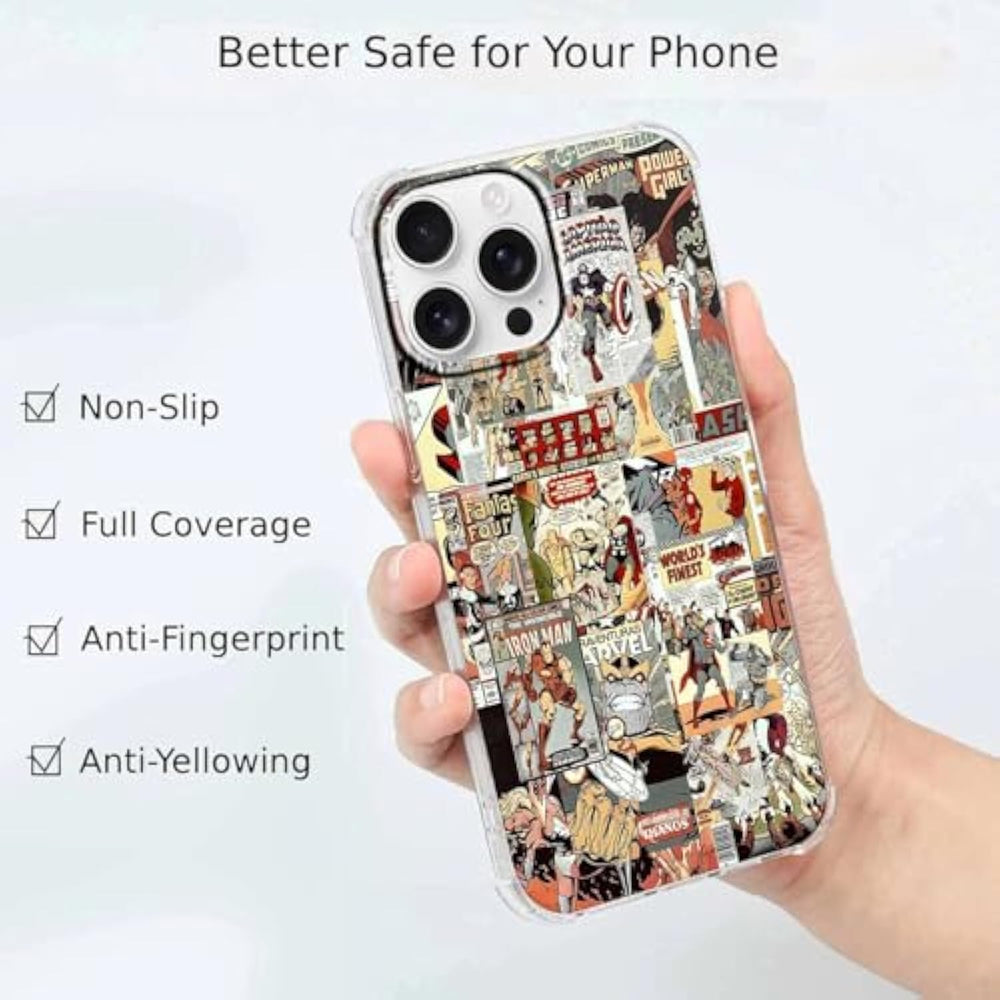 | [Excellent Gift Choice]: With Unique Superhero Design Pattern On The Case,Makes It Particularly Distinctive And Eye-Catching.It Is A Excellent Choice To As A Good Gift For Friends,Classmates, Teachers,Family Members,Etc. | | [Advanced Material]: Different Form Common Material,This Case Is Made Of High Quality Tpu Material.It Is Transparent, Light And Thin,But Has Good Impact Resistance And Will Not Turn Yellow In Several Years. | | [Original Pattern With 4K Printing]: It Is A Transparent Case With Original Design Pattern On The Back.The 4K Resolution Printing Technology Makes The Pattern Particularly Clear.Besides,We Use Anti Shedding Ink,The Pattern Will Not Fade Or Peel In Several Years. | | [Comprehensive Protection And Precise Compatibility]: This Phone Case Is 1.5Mm Thick With Raised Edges For Screen And Cameras, Protecting Your Iphone From Scratches And Bumps. All The Holes Are Precisely Drilled,Very Easy To Access. | | [Notes And ]:Only Fit Iphone 16 Pro(6.3 Inch),You'D Better Check Your Phone Model Before Order.If You Have Any Issue About The Product,Please