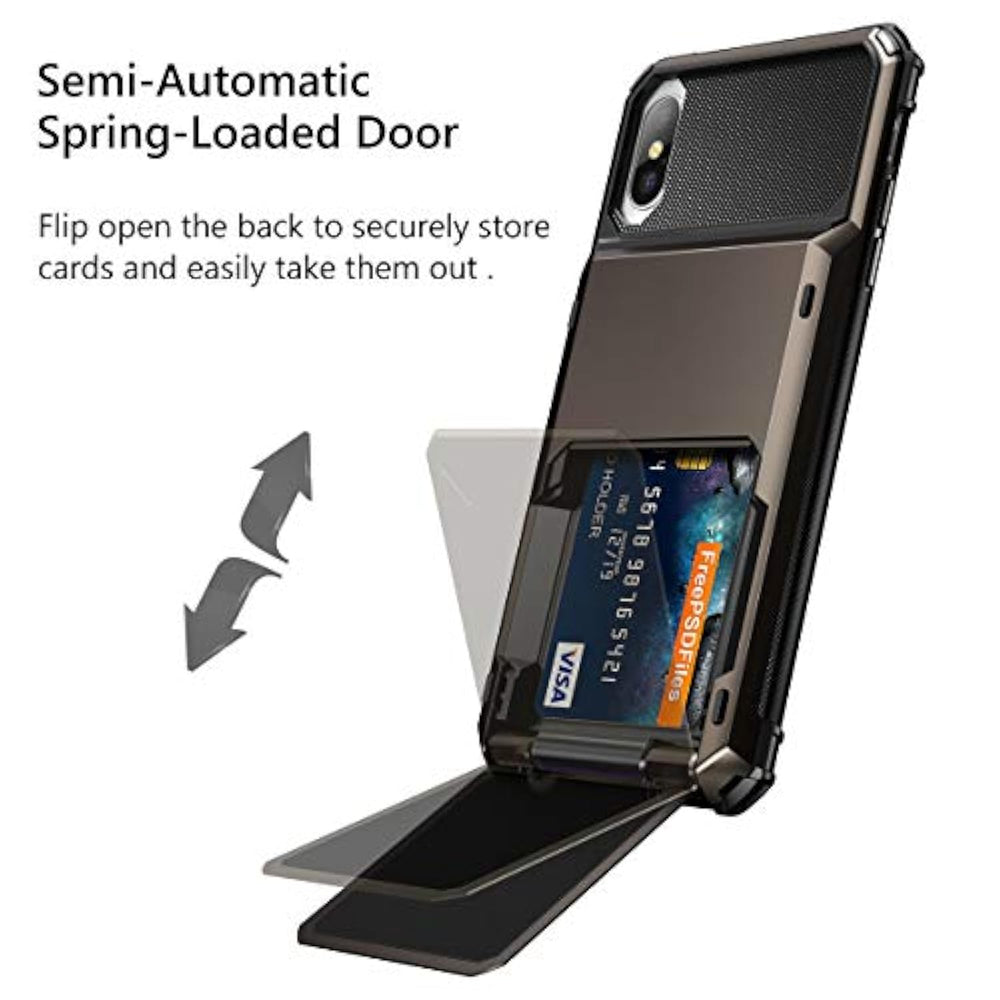 | Stylish And Convenience Wallet Case Compatible With Iphone Xs Max (6.5 " Display) | | Enlarged Space For Up To 4 Cards (Credit Cards, License, Folded Bills, Other Id-Size Cards) | | Semi-Auto Spring Door For Guarding Your Cards Securely And Easily Flip Open And Close | | Heavy Duty Armor Design, Super Cool, Very Protective And Convenient In Daily Use | | Precisely Cutting, Easy Access To All Control, Replace Your Bulky Wallet With This Case When Traveling Light | |