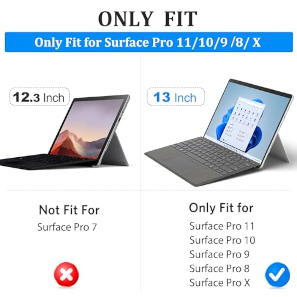 | Compatibility: Designed To Fit Microsoft Surface Pro 11(2024)/Pro 10 For Business(2024)/Pro 9(2022)/Pro 8/Pro X. Please Check Your Device Model Before Purchase. | | Premium: This Surface Pro 9 Case Is Present Of Luxurious Lining And Handcrafted From Premium Splash-Proof Pu Leather Exterior And Anti-Scratch Microfiber Interior. | | Multiple Angles: The Three-Gear Anti-Slip Groove Allows You To Adjust The Surface Pro Device To Multiple Angles Securely. So You Can Enjoy Your Contents Hands-Free, Enabling You Indulge In Working Without Any Tiring Feeling. | | Design: Comes With Built-In Strong Magnet, So You Can Close The Lid Magneti