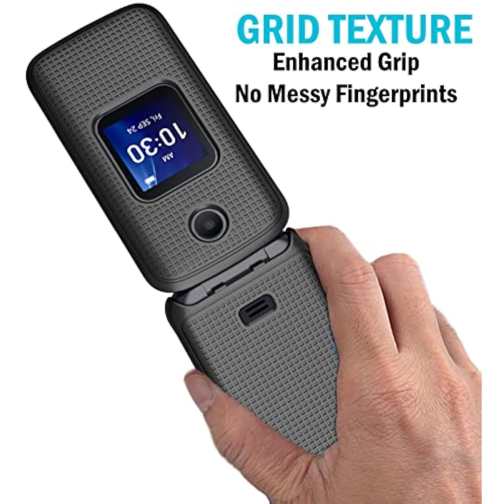 | TWO ITEM COMBINATION: Protective Case + Custom Belt Clip Holster Combo for the "Alcatel Go Flip 4" or "TCL Flip" or "TCL Flip Pro" or "TCL Classic" or "TCL FLIP Go" | | ROTATION: Slide Your Phone Down Into the Holster. Ratchet Clip Will Turn/Lock In Different Positions Vertical, Horizontal, etc. Low Profile Clip Keeps Your Phone Secure At Your Side | | CARRY AND CONCEAL: The "Face-In" Design Keeps Your Screen Protected and Concealed While on the Move; Also Fits "Face-Out" for Viewing | | FREEDOM: Free Your Pockets and Carry Your Phone in Comfort with Quick Access; Textured Pattern with Powder Coating Provides Enhanced Tactile Grip and No Messy Fingerprints | | LIKE A GLOVE: Contoured Specifi