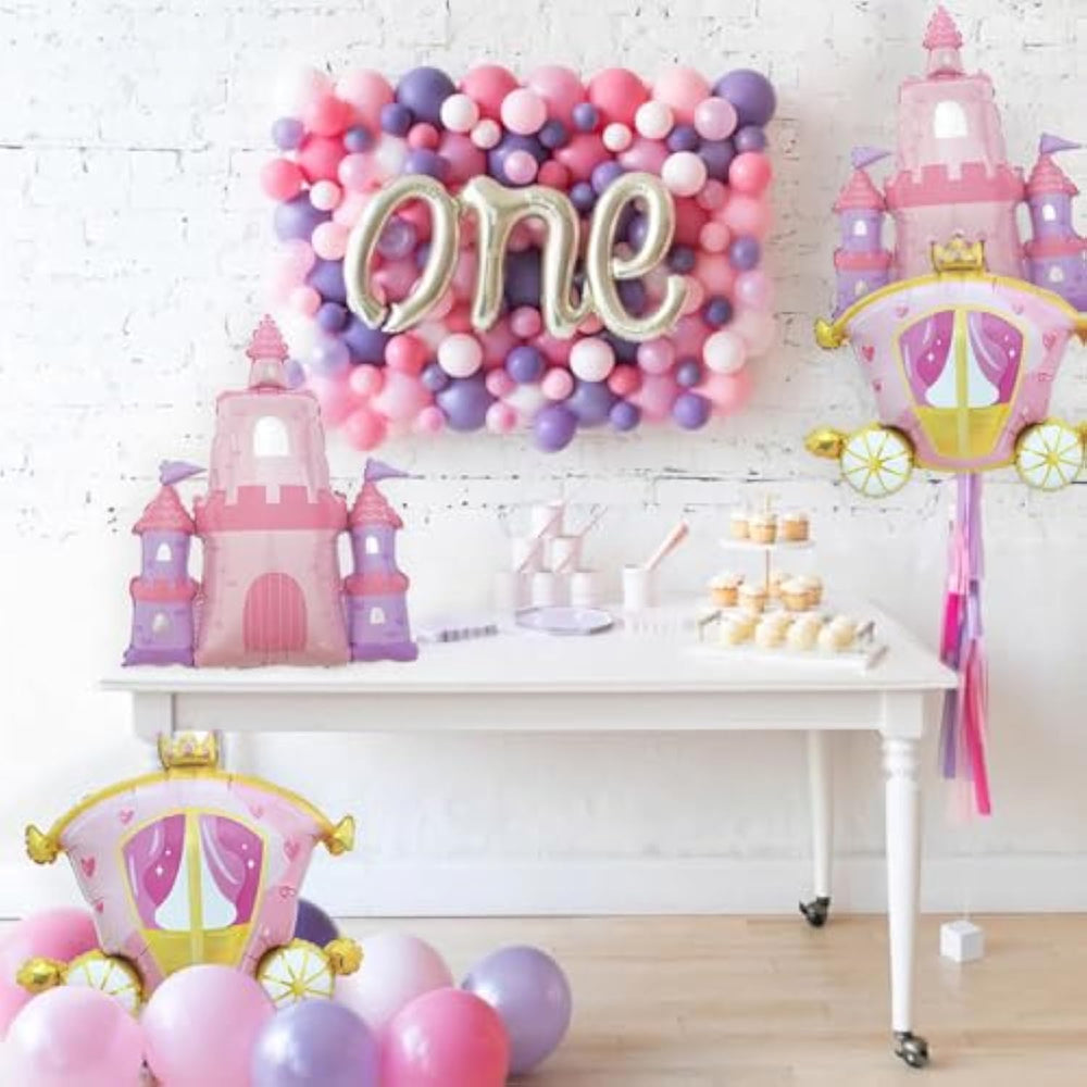 | Princess Theme Foil Balloons: Pink Castle Balloon X 2, Pumpkin Carriage Balloon X2 | | Princess Birthday Party Favors: Great Backdrop Decorations For Four Ever A Princess Birthday Decorations, Princess Diaries Party Decorations | | Princess Party Supplies: It Will Be A Hit Add These Mylar Balloons To The Princess Party Balloon Arch | | Easy To Decor: This Is The Easiest Decoration With A Big "Wow" Highlight Factor At Party, Fill The Helium To Make Them Float Or Use The Straw Included In The Package To Inflate, But Notice If You Inflate With Air They Won'T Fly | | Commitment: