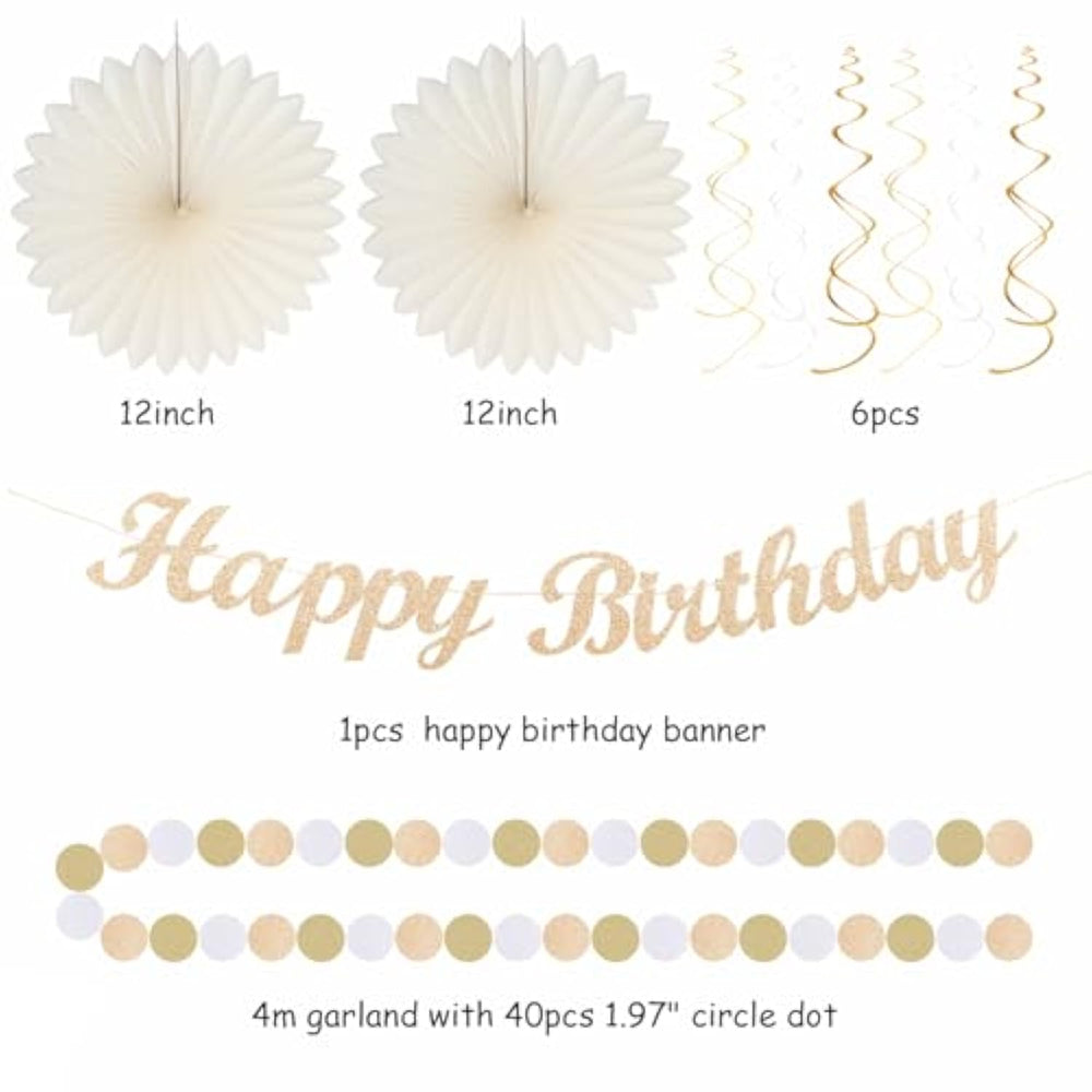 | Reliable Quality Reusable: Our Bohemian Celebration Birthday Party Decorations Backdrop Is Made Of Premium Paper Material, Ensuring A Great Look And Durability. Sturdy And Long-Lasting, And Can Be Reused | | Package Includes: This Kits Include 1Pcs Rose Gold Happy Birthday Banner, 1Pcs Circle Dots Paper Banner, 10Pcs Tissue Pom Poms, 2Pcs Paper Lanterns, 2Pcs Paper Flower Fans, 6Pcs Paper Swirls Hanging Streamers In Champagne Beige And Peach Colors, And Different Sizes | | Diy Needed: The Paper Lanterns And Paper Fans Are Easy To Put Together And Hang. The Tissue Paper Pom Poms Are Harder To Diy Them, Please Arrange More Time Before The Party, And The Circle Garland Can Be Decorated On The Walls, Happy Birthday Banner You Need To String Them Together | | Wide Application: This Boho Fall Retro Happy Birthday Decor Kit Has Been Used For All Kinds Of Celebrate Birthday Parties And Special Occasions. Perfect For First 1St 15Th 16Th 17Th 18Th 20Th 21St 25Th 30Th 35Th 40Th 50Th 60Th 65Th 70Th 75Th 80Th 90Th Aesthetic Pastel Groovy Birthday Supplies Backdrop, Elegant Party Decorations For Adult Women, Girls And Mom | | Unique Design For Birthday Decorations: Unique Color Mix And Match Party Decorations Will Make Your Party More Vibrant And Gorgeous. This Design Is Suitable For One Sweet Peach Birthday Party Decorations. A Rustic Birthday Party Will Make Your Birthday Party Beautiful And Make A Big Hit! | |