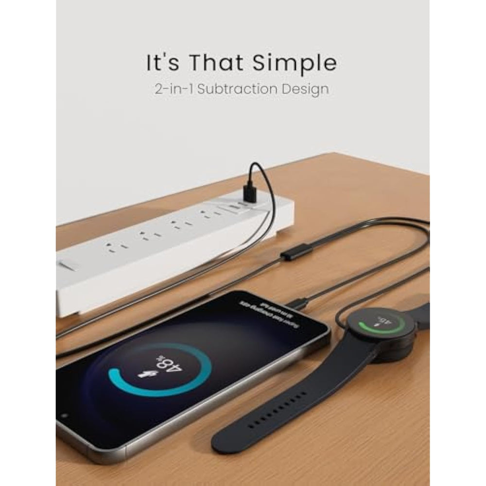 | 2-In-1 Charging Cable: 2 In 1 Charger Cable Is A Subtractive Design With Samsung Galaxy Watch Charger And Usb-C(Type-C) Charging Cable.?Charging Dock Is Only For Samsung Galaxy Watch Ultra 47Mm(Sm-L705U);Watch 7 40Mm(Sm-L300Nz);Watch 7 44Mm(Sm-L310Nz);Watch Fe 40Mm(Sm-R861);Watch 6 40Mm/44Mm;Watch 6 Classic 43Mm/47Mm;Watch 5 Pro 45Mm?Sm-R920);Watch 5 40Mm?Sm-R900)/5 44Mm?Sm-R910);Watch 4 40Mm?Sm-R860)/4 44Mm?Sm-R870/Sm-875);Watch 4 Classic 42Mm?Sm-R880)/4 Classic 46Mm?Sm-R890/Sm-R895);Watch 3 41Mm?Sm-R850)/3 45Mm?Sm-R840) ;Watch Active 1 40Mm?Sm-R500);Active 2 40Mm?Sm-R830)/2 44Mm?Sm-R820); (Not For Gear S2/S3/S4). | | Usb To Usb-C(Type-C): Compatible With Samsung Galaxy 23 Ultra/S22/S22+/S22 Ultra/S21/S21+/S21 Ultra/S21 Fe/S20/S20+/S20Ultra/S20 Fe/S10/S10+/S10 Lite/S10E/S9/S9+/S8/S8+ Samsung Galaxy Z Fold4/Z Flip4/Z Fold3 5G/Z Flip3 5G/Z Fold2 5G/Z Flip 5G/Z Flip Samsung Galaxy Note20 Ultra 5G/Note20 5G/Note10+/Note10+5G/Note10/Note10 Lite/Note9/Note8 Samsung W23/W23 Flip/W22 5G/W21 5G Samsung A71/A51/A70/A50/A20/A10E.Galaxy Buds/Buds+/Buds Live/Buds Pro.In-Ear Phones,Earbud Headphones,Tablets And Other Multiple Devices With Usb-C Port. | | Qc 3.0 Fast Charging:Usb-C Port Supports Fast Charging Up To 60W (20V/3A),Including 45W,30W,25W For Phones Tablets Earbud Headphones And Other Multiple Devices. | | Born For Portability:Such A 2-In-1 Charging Cable Is Uncommonly Simple And Convenient.Get Portable And Convenient Wireless Charging For Samsung Galaxy Watches,And Charging For Cell Phones,Tablets,Earbud Headphones Anytime,Anywhere. | | Enhanced Durability:Engineered With High Quality Materials Make A Samsung Galaxy Watch Charger That Withstands 180-Degree Bends Over 6,000 Times, Inserts And Removes Over 5,000 Times?And Bears Up To 22 Lbs(10Kg) Of Weight. | | Professional Service?Our Commitment To Excellence Doesn'T End At The Point Of Purchase. We Offer Comprehensive Product Support ,After-Sales Service,And 24H