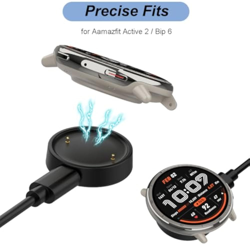 | ?Compatible Watches?This Charger Compatible With Amazfit Active 2, Bip 6 Smart Watch. With 3.3 Feet Charging Cable (Not Compatible With Amazfit Active, Bip 5, Bip 3) | | ?Durable Premium?The Active 2 Charging Cable Is Made Of High Quality Wire, Provides Excellent Charging Experience For Your Watch. About 2.5 Hours A Full Charge. Note: Please Use The Recommend Usb Adapter (5V/1A). | | ?Ultra Safe Charging?The Bip 6 Charger Built-In Over-Voltage Protection, Over-Current Protection, Short-Circuit Protection. Provides Stable And Safe Charging For Your Watch. | | ?More Convenient?With A Replacement Charger Cable Will Make Your Smart Watch Charged More Convenient Whenever You Are At Home, In Office Or On Travel. | | ?What You Get?A Deal Is Not The End, But The Beginning Of Our Service. If Any Problem, Please