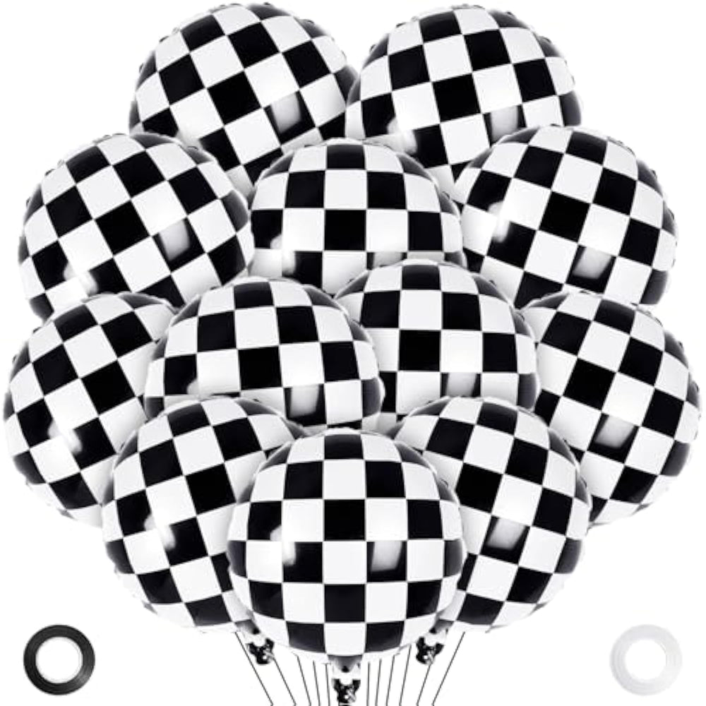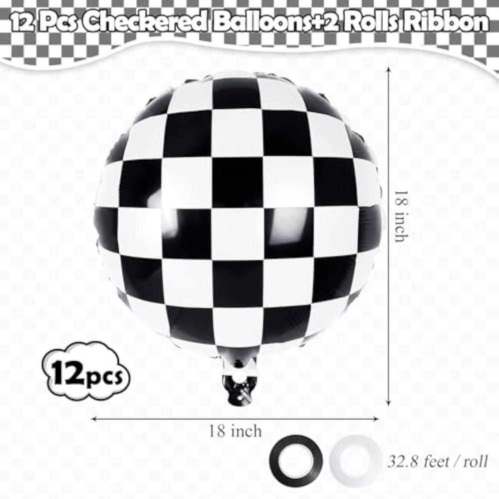 | Package Contains: You Will Get 12 Pcs Black And White Checkered Balloons And 2 Rolls Ribbon To Tie These Balloons. The Balloons Are Around 18 Inch In Length And 18 Inch In Width; The 2 Ribbons Are All 32.8 Feet Long. | | Easy To Use: By A Balloon Pump, These Checkered Balloons Are Easy To Be Blown Up With Air Or Helium, And They Can Stay Inflation For Days. With The Ribbon Provided In The Package, You Can Hang These Balloons And Decorate Your Unique Parties. | | Checkerboard Design: The Checkered Racing Foil Balloons Are Designed As Black And White Checkerboard Shape. They Are Elegant In Color, Looks Like Many Freeways, Will Definitely Loved By Kids Who Are Fans Of Racing! | | Great Party Decoration: The Checkered Balloons Are Excellent Supplies For Many Party Occasions, Such As Race Car Themed Party, Two Fast Birthday Decorations, Chess Themed Party, Etc. L. The Checkered Balloons Can Make Your Party More Joyful. | | Tips For Checkered Balloon: When Blowing Up The Checkered Mylar Balloon Until It Is Around 90% Full, They Presents The Best Looks. Please Do Not Fill Too Much Air Or Helium Into The Balloon, Which May Cause The Balloon To Explode. | |