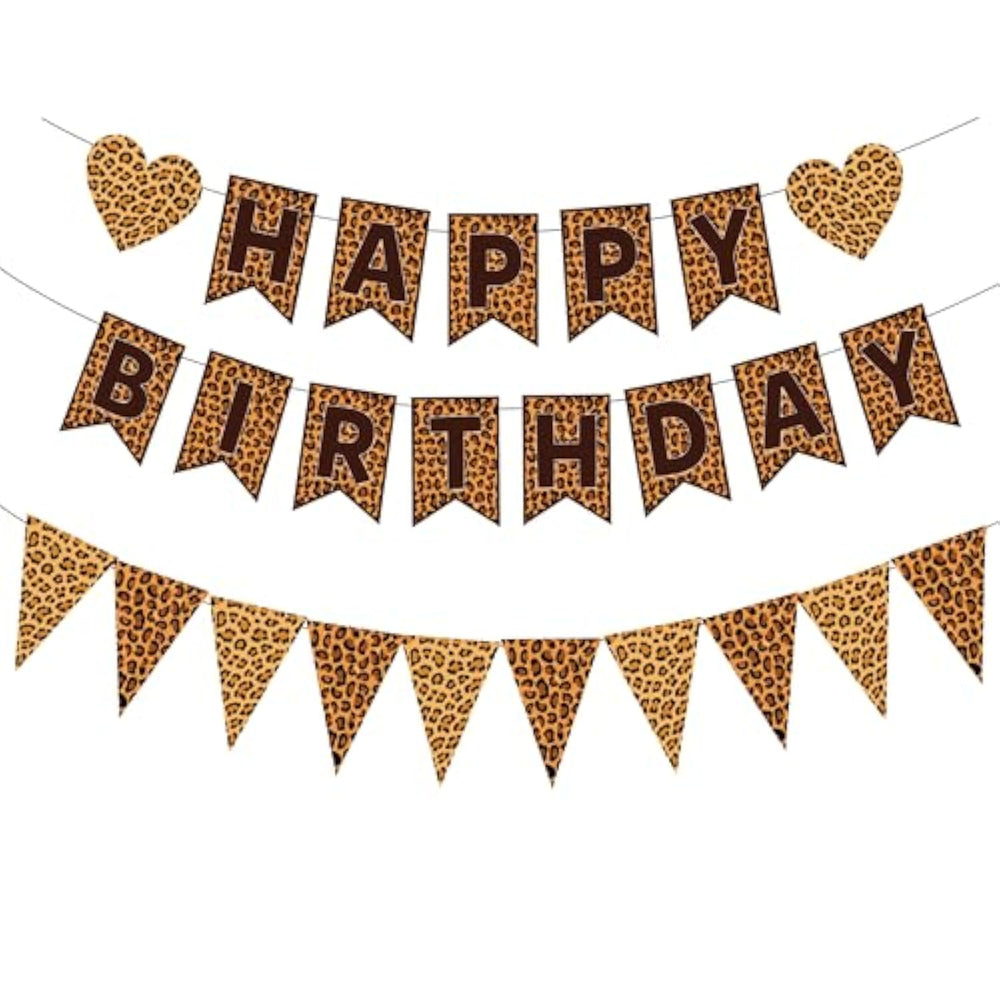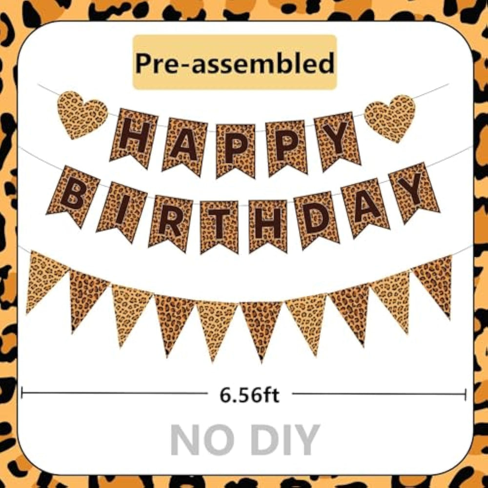 | What You Get:Includes 2Pcs 8.2 Feet Letter Banners,1Pc Triangle Pennant Banner,Combinate Cute And Mature Leopard Pattern,Add Great Festivity To Leopard Birthday Party Decorations | | Cheetah Print Theme Birthday Decorations:The Colors And Prints Are Very Clear,Which Will Create An Amazing Leopard Print Birthday Atmosphere.This Cheetah Birthday Party Supplies Will Give You Everything You Need To Celebrate Your Birthday Girl’S Leopard Themed Party. | | Pre-Assembled And Easy To Hang : Cheetah Leopard Print Birthday Banners Decorations Set Are Assembled In Advance,So You Don'T Need To Diy It By Yourself,Which Can Save Your Time And Effort During The Process Of Party Preparation | | Sturdy Material Hand-Crafted: Our Cheetah And Leopard Birthday Banner Decorations Are Made Of Sturdy Quality Cardstock Paper, Sturdy And Reusable,Fetured With Beautiful Colors | |