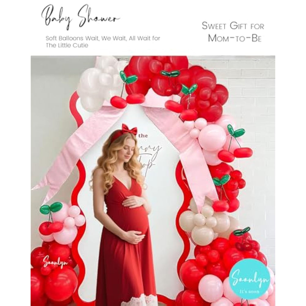 | Express Love For Baby: The Cherry Red And Pink Balloon Arch Would Show Your Life Mind, It Added An Extra Lively And Happy Ambiance To Your Party | | 30% Thicken Berry Balloons: Is Dedicated To Make Thicker Than Average For Over Ten Year, And The Cherry Balloon Garland Kit Is So Luxury Color! Give Us A Chance, You'Ll Fall In Love With | | Novice Make It: Step 1, Blow It Up; Step 2, String Round Balloons; Step 3, Hang It Up; Step 4, Tape Balloons To Fill Gas. Regular 40-60 Min Assemble Time For 2-3 People. Please Follow Paper Instruction | | Berry First Birthday Decor: 14Ft 200Pcs Matte The Cherry Balloons Are 12In 10In 5In Red Balloons, White Balloons, Light Pink Balloons, White Sand Balloons, Dark Green Long Balloons. 4Pcs Balloon Accessories. Please Check Out Video Show | | Add Much Vibe For: She'S The Cherry On Top Bridal Shower, Birthday Decorations, Cherry Party Decorations Supplies, First Birthday Decorations, Cherry Baby Shower Decorations | | 24Hrs After