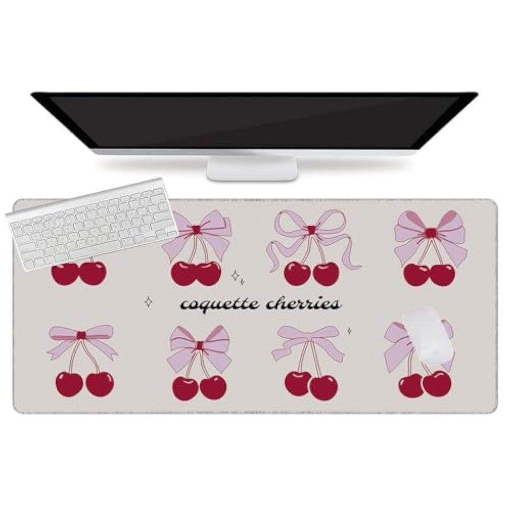 | ?Coquette Aesthetic Mouse Pad?-Pink Cherry With Gift Bow Desk Mat Is Big Enough To Accommodate Your Computer, Laptop, Keyboard And Other Desk Items,And Still Leave Plenty Of Space For Your Mouse To Move All Around.Decorate Your Study,Computer Desk, Bedroom Or Office,Modern Office And Home Accessory | | ?Vintage Desk Matt For Desktop?Large Extended Full Desk Mouse Pad Measures 35.4"X15.7"X0.1"/900X400X3Mm, Provide You A Larger Usable Area To Cover Keyboard,Applies To All Types Of Keyboards And Mice. The Large Size Of Keyboard Pad For Never Worry About Running Off The Edge.The Thickness Of Girly Pink Mouse Pad Is 0.12 Inches, Enough To Support The Wrist, Thus Ensuring The Comfort Of The Wrist And The Gaming Experience | | ?Stitched Edges Desk Pad?Meticulously Engineered Stitched Edges Bring Durability And Beauty To Your Giant Mouse Pad.The Latest Stitching Technology Ensures That The Desk Mouse Pad Will Not Wear Or Deform During Use.Stitched Frame Ensures It Doesn'T Fray Or Fall Apart Like Other Desk Mouse Pads.Mouse Mat Can Be Used For All Computer Keyboards,Mice And Laptop, And There Is Still A Lot Of Room For Movement | | ?Soft And Non-Slip Rubber Base?The Natural Rubber Bottom Of The Mouse Mat Remains Stable,It Can Effectively Prevent The Mouse And Keyboard From Sliding And Moving For Stable Operation.Works Well On All Types Of Desks Including Wood, Glass, Leather, Metal, Marble Desk And More. Even In The Most Intense Gaming Process, The Gaming Mouse Pad Can Be Firmly Placed On The Desktop | | ?Smooth Surface Water Resistant?The Extended Gaming Mouse Pad Are Made Of Smooth Cloth Material, Achieve Extremely Precise Mouse Control And Smooth Glide,Lets Your Mouse Slide Smoothly And Precisely Along The Large Mouse Mat,And Also Protect Your Desktop,Laptop,Keyboard,Mouse. Water Resistant And Heat Resistant Material Makes This Gaming Mouse Pad Easy To Clean. If You Want To Clean This Desk Cover,Simply Wipe Its Surface With A Wet Cloth | |