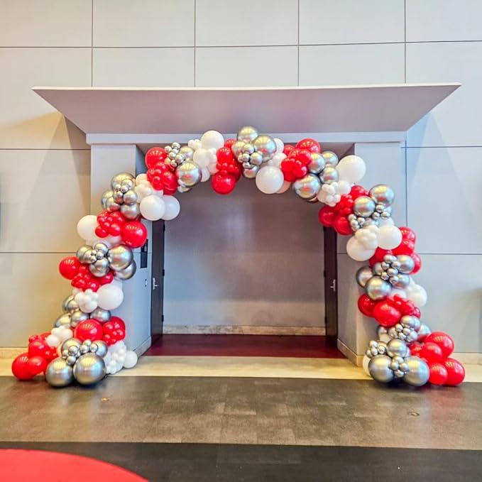 This red, white, and silver balloon arch kit includes 144 pieces to create a bright and festive decoration for any celebration. The set features red, white, and silver latex balloons in multiple sizes, along with transparent snowflake and candy cane foil balloons for a winter-inspired look. Made from high-quality latex, the balloons are durable, vibrant, and designed to last throughout your event when properly inflated. The kit comes with all the necessary accessories for easy assembly, allowing you to build a beautiful balloon arch or garland in a short time. Perfect for Christmas, winter holidays, New Year celebrations, birthdays, weddings, or themed parties, this balloon arch adds a cheerful and elegant touch to your event while creating a fun and festive atmosphere.