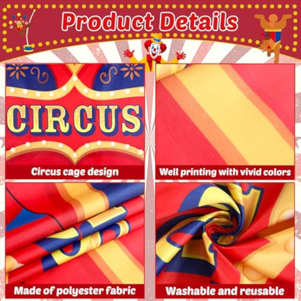 | Package Contents: You'Ll Get 1Pc Of Circus Photo Door Banner, Measuring 71 X 61 Inch/180 X 154 Cm, And 2 Pcs Of 20Ft/6M White Long Ropes. With Its Large Size And Beautiful Design, It Can Be Used For Taking Photos And Decorating At Your Carnival Party. The Circus Photo Booth Prop Is Large Enough To Make It Stand Out At Both Indoor And Outdoor Events | | Vibrant Carnival Circus Design: The Circus Photo Banner Features A Festive, Colorful Design With Red And Gold Tones. The Word "Circus" Is Prominently Displayed At The Top, Surrounded By Flags And Stars, Capturing The Lively Spirit Of A Circus. Gold Patterns On The Sides And Wheel Designs At The Bottom Add A Vintage And Dynamic Feel, Making It An Attractive Focal Point. The Center Area Is Ideal For Placing Guests, Ensuring They Stand Out In Photos. | | Easy To Use: The Carnival Party Photography Props Decoration Come With 20Ft/6M Ropes, Which Can Be Easily Hung In The Copper Ring, Saving You Time And Energy In Decorating, After Installation, You Just Stand Behind The Carnival Photo Banner, You Can Capture This Fun Moment And Make Your Party Memorable. | | High-Quality Material: Made Of Premium 100% Polyester Fabric, The Large Carnival Cage Photo Hanging Backdrop Boasts A Smooth Surface And Exceptional Durability. The Carnival Circus Porch Banner Is Lightweight, Washable, Reusable, And Foldable, Allowing For Easy Carrying. | | Wide Application: Ideal For A Variety Of Occasions, This Carnival Photo Door Banner Is Ideal As A Door Decoration, Photo Booth Backdrop, Or Centerpiece For Your Carnival Party Decor. It'S Ideal For Halloween, Outdoor Parties, Birthday Celebrations, Kids’ Parties, School Events, Trunk-Or-Treats, And Any Carnival-Themed Festivities. Bring Festive Charm To Any Occasion And Create Lasting Memories With This Fun, Colorful Banner. Imported. | |