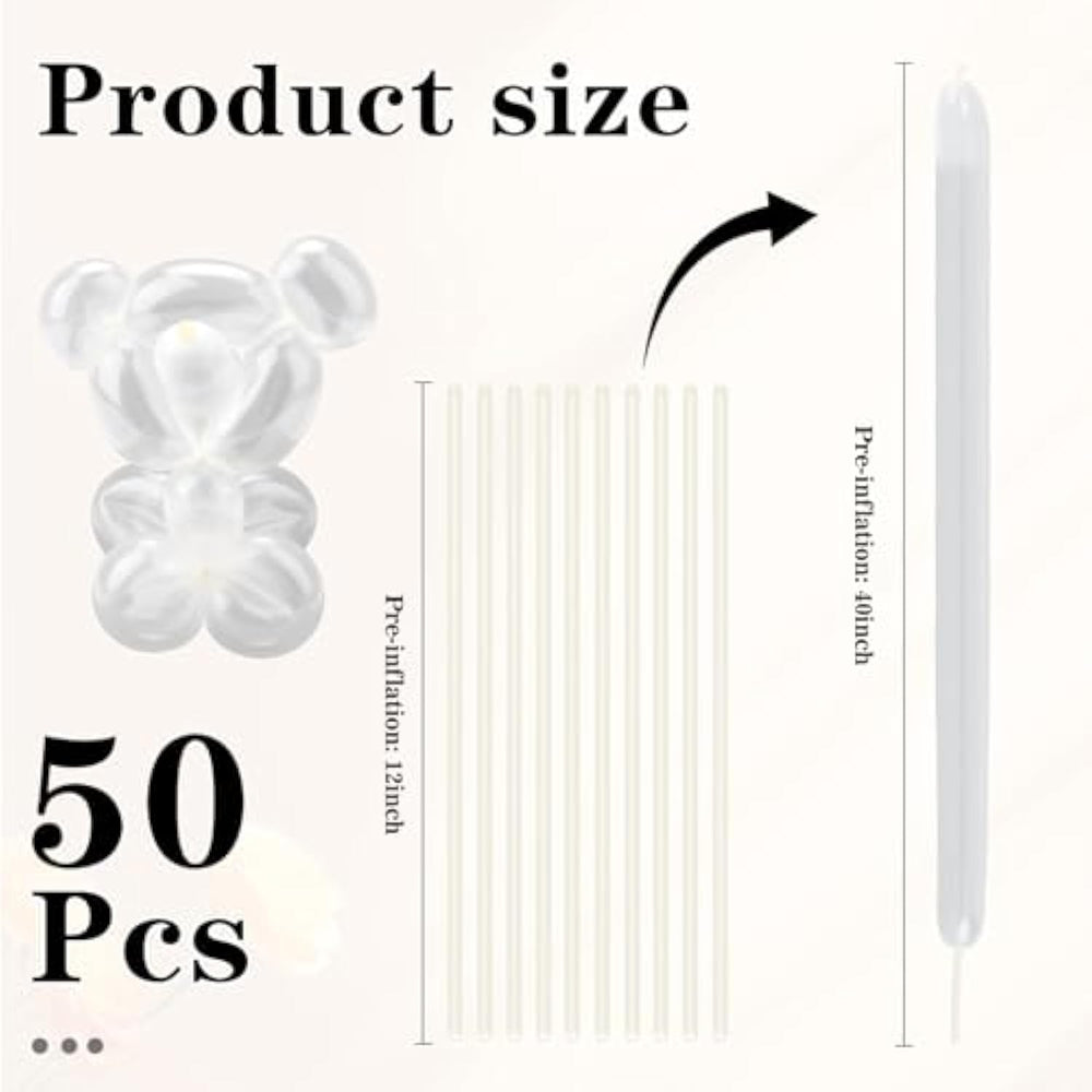 | High Quality: Our 260 Balloons Are Made Of High-Quality Latex Material, Thicker Than Ordinary Latex Long Balloons, Not Easy To Break, Have Good Stretch And Resilience, And Can Be Made Into Many Shapes. | | Instructions For Use: It Is Recommended To Use A Hand-Held Balloon Pump For Slow Inflation. Before Inflating The Balloon, Use Appropriate Force To Pull It Back And Forth 4-7 Times. This Will Make The Shape More Flexible, Easier To Operate, And Not Easy To Break. | | Product Dimensions: Our 260 Balloons Measure 12 Inches Before Inflation And 47-50 Inches After Inflation. (Warm Reminder: Please Inflate Slowly And Not Inflate More Than 90% To Avoid Rupture. Do Not Place It In High Temperature Or Sharp Environments). | | Diy Balloons: These Long Balloons Are Very Magical. You Can Make Long Balloons Into Different Shapes (Bears, Bugs, Spiders, Garlands, Dogs, Or Anything Else), Stimulating Children'S Creativity And Imagination And It Can Also Enhance The Parent-Child Bond. | | Widely Used: Long 260 Balloons Are Suitable For Party Decorations On Various Occasions Such As Balloon Artists, Magicians, Magic Shows, Art Festivals, School Events, Family Events, Children'S Birthdays, Parties, Thanksgiving, And Christmas, Making Parties And Children'S Childhoods Fun. | |