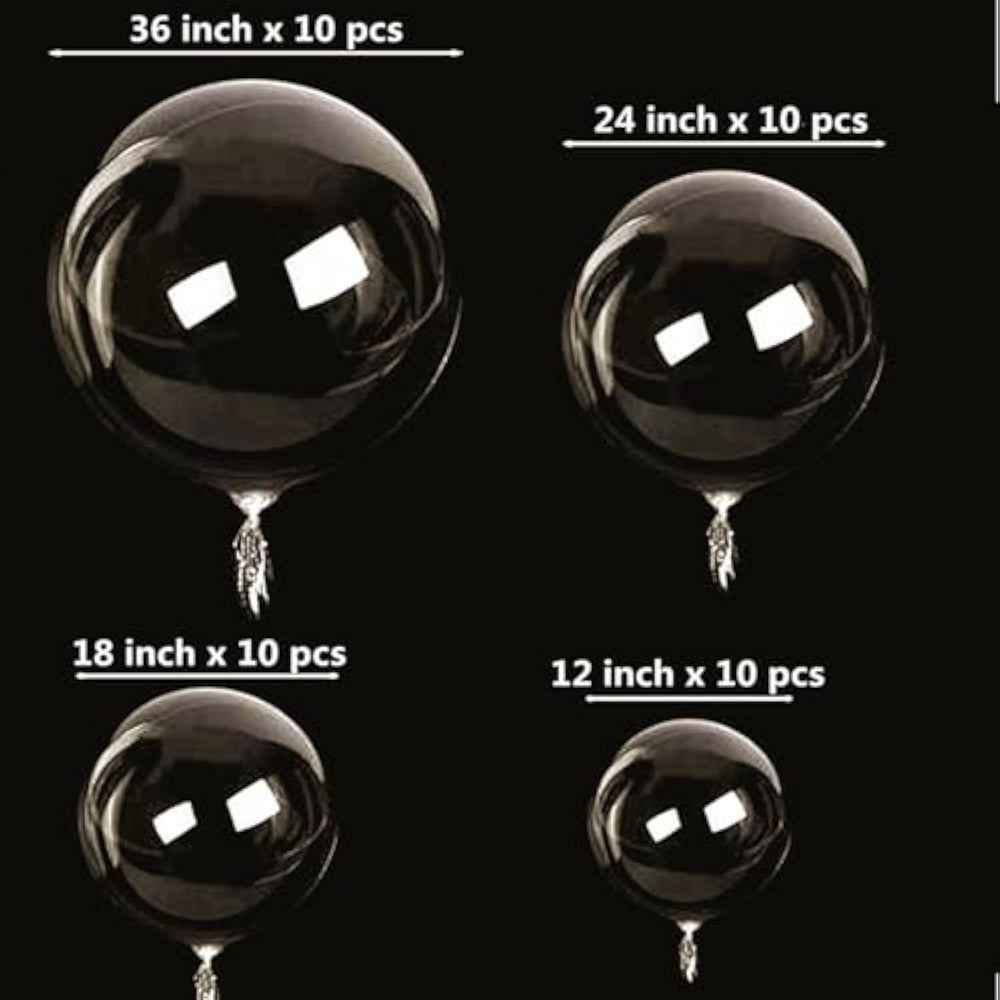 | What You Get:40 Clear Balloons In 4 Sizes, 12 Inch, 20 Inch, 24 Inch And 36 Inch, 10 Pieces In Each Size, Varies Sizes Balloons Will Make Your Decoration More Wonderful. | | Material: These Bobo Balloons Are Made Of Latex Material, It Has Advantages Of Safety And Durability, No Toxic Element And Unpleasant Odor Contained, Firm And Strong To Use For A Long Time, The Balloons Are Not Easily Broken, Giving You A Smooth Using Experience | | How To Use: Before Inflate, Stretch The Balloons In Order To Avoid Deforming, After It Is Filled, Stretch The Excess Part And Tie It Directly. Please Don'T Blew The Baloons By Mouth, Use The Balloon Pump Or Helium Tank At Home. | | Clear Design: Bobo Balloons Have A Transparent Surface, You Can Install Small Lights On The Surface, You Can Also Add Colorful Confetti Or Feather Or Confentii Into The Baloons To Make Them Look Better, Creating The Balloons That Match Well With Your Themed Party And Style. | | Party Decoration: Latex Transparent Balloons Kit Can Decorate Many Places Like Backdrop, Curtain, Wall, Furniture, Can Be Applied For Carnival, Birthday Party, Celebration, Christmas, Halloween, New Year Party, Anniversaries, Etc. | |