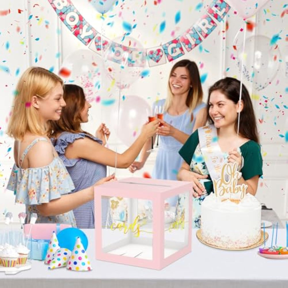 | Card Box Size: Our Clear Pink Cards Card Box Measures 8.7 X 8.7 X 8.7 Inches, Providing Ample Space To Accommodate All Sizes Of Envelope Cards For Weddings Or Parties. Designed To Streamline The Organization Of Your Event, It Ensures A Hassle-Free Experience | | Clear Display: Designed With See-Through Panels, This Box Beautifully Showcases Cards And Messages Inside While Making It Easy For Guests To See Where To Drop Their Envelopes. It'S Both Functional And Decorative—Perfect For Adding A Modern Touch To Your Event | | Easy Assembly And Convenient Storage: The Foldable Design Ensures Easy Delivery And Storage. Follow The Picture For A Quick Assembly In Seconds. This Card Box For Weddings And Parties Is Also An Excellent Birthday Card Box, Making Celebrations Hassle-Free | | Versatile For All Celebrations: Whether It'S A Wedding, Graduation, Birthday, Bridal Shower, Or Baby Shower, This Stylish Card Box Fits Right In. Use It As A Gift Card Holder, Money Box, Or Wish Box—It’S A Beautiful And Practical Addition To Your Party Decor | | Color Options By : Explore Various Color Choices For Your Card Box On Our Store. If Our Gift Card Box Falls Short Of Your Expectations, Don'T Hesitate To Reach Out. We'Re Here To Assist You And Ensure Your Satisfaction. Whether You Need A Gold Card Box, A Party Box, Or A Wedding Gift Card Box, We'Ve Got You Covered | |