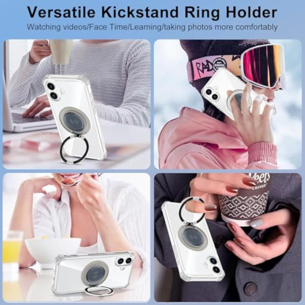| Only Compatible With Iphone 16 Case: The Clear Phone Case With Ring Stand Of This Page Is Only Design For 6.1 Inch Iphone 16,Please Select The Right Model Option You Need Before Purchg, Thank You | | 360 Degree Rotating Ring Stand: This Clear Magnetic Iphone Case Comes With A 360° Aluminum Alloy Rotating Stand On The Back, Which Can Be Stabilized On A Flat Surface. You Can Adjust The Tilt Of The Stand As You Like To Free Your Hand And Bring You A Better Viewing Experience | | Heavy Duty Drop Protection: The Extra Heavy Corners Of Our Magnetic Phone Case Can Effectively Disperses The Vibration Caused By The Accidental Impact, To Protect Your Iphone From Drops Or Collision Damage | | High Quality Materials: The Clear Phone Case With Ring Stand Is Made Of High-Quality Materials, And It Is Not Easy To Be Scratched Or Yellowed After Long-Term Use | | Compatible With Magsafe: Our Transparent Phone Case With Magnetic Ring Is Compatible With Most Magsafe Accessories. You Can Easily Attach It To Your Magnetic Accessories And The Case Supports Wireless Charging | |