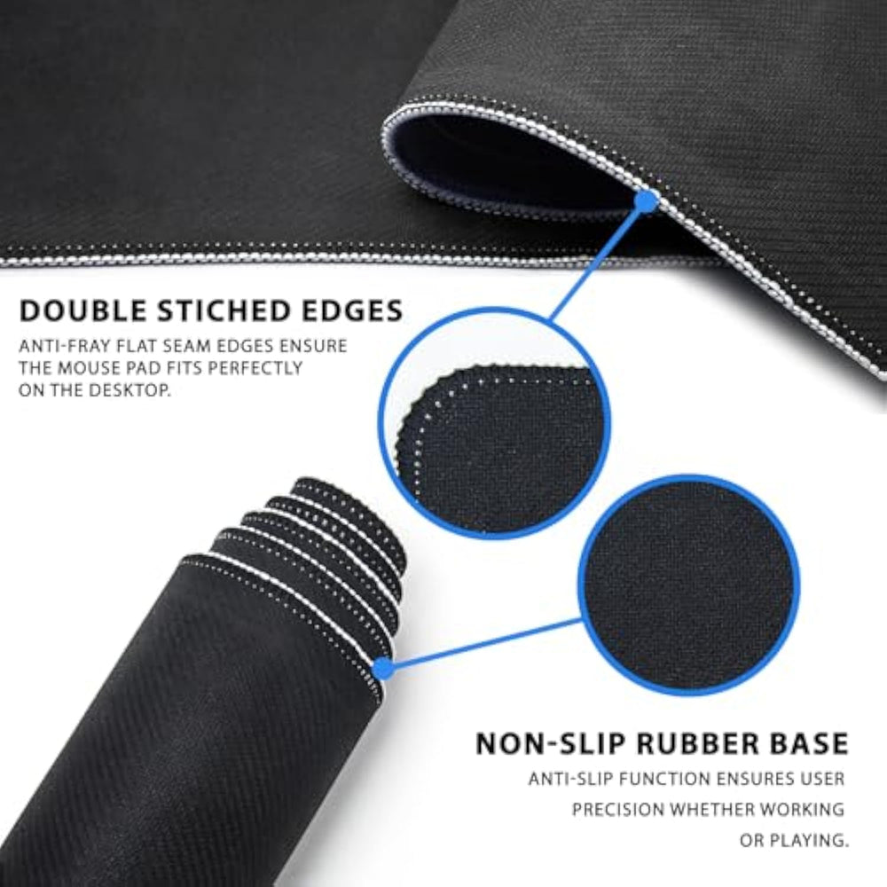 | Protect Your Desktop: Extended Desk Mousepad Measures 15.7”X 35.4”, Serving As A Practical Workspace Protector Or Stylish Desktop Accent. Its Expansive Surface Readily Accommos A Full-Sized Keyboard, Mouse, Laptop, And Various Office Peripherals, Maximizing Usable Area For Professional E-Sports, Business Tasks, Or General Work. Compatible With Diverse Mechanical, Wireless, And Optical Mice, It Ensures A Comfortable And Seamless Operating Experience For Study, Work, Or Competitive Gaming. | | Anti-Skid Rubber Base: The Gaming Mouse Pads Base Incorporates A High-Density Rubber Construction Featuring A Textured Non-Slip Surface That Generates Significant Adhesion. This S A Firm Bond To Hard Desktop Surfaces. The Mat Remains Immovable Even During Vigorous Gaming Sessions Or Rapid Typing. The Advanced Grip System Maintains Superior Traction On Challenging Surfaces Like Glass And Metal, Where Conventional Non-Slip Pads Often Fail. | | Smooth Surface: Desk Mat Protector Featuring A Smooth, Low-Resistance High-Density Fabric Surface, The Pad Enables Effortless Glide. The Optimized Friction Coefficient Facilitates Uninterrupted Sliding Motion. Its Breathable Design Enhances Thermal Dissipation While Preserving Surface Integrity, Ensuring Consistently Precise And Fluid Cursor Movement During Prolonged Office Hours Or Extended Gaming Marathons. | | Effortless Maintenance: Large Mouse Pads Crafted From Premium, Resilient Materials, This Oversized Mat Effectively Repels Damage From Liquid Spills, Preserving Desktop Cleanliness. Daily Upkeep Requires Only A Simple Wipe With A Damp Cloth To Remove Stains. Reinforced Edges Featuring Precision Stitching Significantly Enhance Durability And Extend The Product'S Lifespan. | | Ideal Gift Option: Computer Keyboard Desk Mousepad Combining Distinctive Design With Versatile Functionality, This Desk Mat Is Both Flexible And Portable, Easily Rolled For Convenient Storage And Transport. Its Adaptability Makes It Suitable For Use In Any Setting. This Thoughtful Gift Is Both A Practical Accessory And A Meaningful Gesture For Friends And Family, Fostering Connection And Enhancing Relationships. | |
