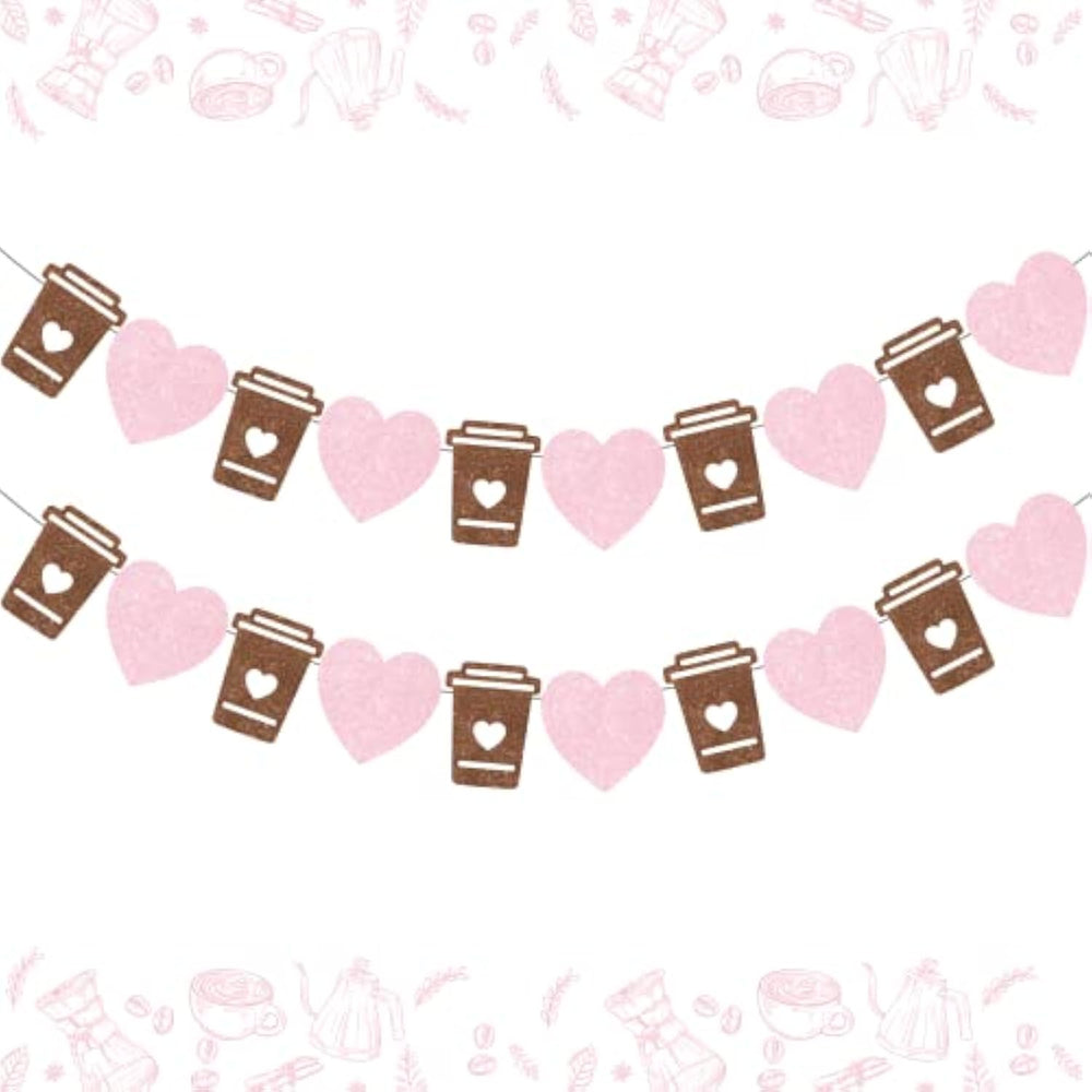 | Package Includes: You Will Get 2 Pieces Pink Glitter Coffee Bar Banners, Each Garland Consists Of 5 Coffee Cups And 5 Hearts. | | Glitter Coffee Themed Party: Our Coffee Bar Banner Is Made Of Glittery Card-Stock, Which Shine Brightly In The Sun And Light, Durable And Sturdy, It Also Can Be Used As Home Decoration After The Party. | | Wide Application: Latte Banner Can Be Widely Used For Decorating Coffee Themed Birthday Party, Bachelorette Party, Engagement Party, Wedding Party, Baby Shower And Other Special Events, It Also Can Be Used To Decorate Coffee Bar'S Wall And Table. | | Unique Design: The Coffee Bar Decoration Is Printed With Coffee Cup And Heart Patterns, Looks Very Cute And Novel. Hang It On The Photo Wall Or Dessert Table As A Photo Background, Make A Warm Memory With Your Family And Guests. | | Coffee Bar Banner: The Banner Needs To Be Strung By Yourself, It Is Simply Strung By The Provided Ribbon And The Pre-Punched Holes And Then Hang It On The Wall, Window, Or The Table | |