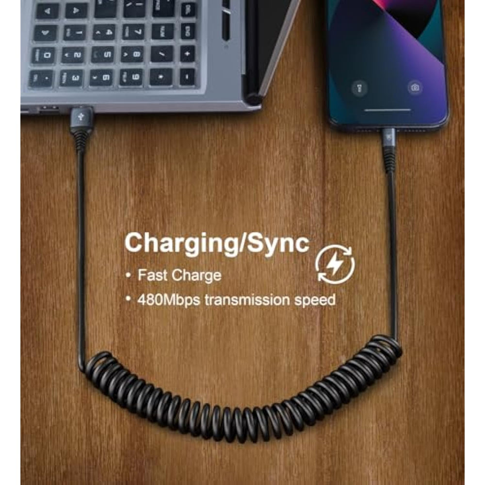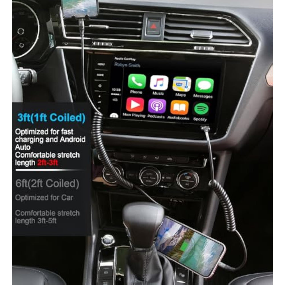 | Iphone Charging Cable For Car : Retractable Iphone Car Charger With Spring Shape Design, Portable And Not Tangled. It Can Well Save The Use Of Space In The Car And Say Goodbye To The Hassle Of Data Cable Clutter And Tangles. | | Elastic Coiled Lightning Cable : Coiled Lightning Cable 3Ft (Stretchable To 4.8Ft, Comfortable Stetch Length 2Ft-3Ft) Coiled Lightning Cable 6Ft (Stretchable To 6.5Ft, Comfortable Stetch Length 3Ft-5Ft) And Bounce Back To Normal Length. If You Use Carplay And Store Your Iphone In A Cubicle, We Recommend Using 3Ft; If You Use Your Device Lying On The Couch While You Are Charging, You Can Choose 6Ft. Iphone Charging Cable 3Ft And 6Ft Can Meet Your Different Needs. | | Mfi Certified Coiled Lightning Cable: Apple Mfi Certified Lightning Charger Cable Meets All Apple Standards With Transfer Speeds Up To 480Mb/S And 2A Fast Charging. | | Wide Compatibility: Compatible With All Iphone Models, Such As Iphone 14/13/Iphone 12 Pro Max/Iphone 12 Pro/Iphone 12/Iphone 12 Mini/11/Xs/Xr/X/Se/Iphone 8/7/6/5. Also Compatible With Ipad And Airpods. | | Professional After-Sales Team: If You Have Any Questions, Please Feel Free To