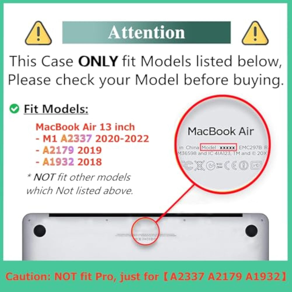 | Compatibility: Only Compatible With 2018-2022 Release Macbook Air 13 Inch With Retina Display Touch Id (Models: M1 A2337 / A2179 / A1932). Warning: This Case Is Not Compatible With Any Other Laptop Models, Please Kindly Check The Bottom Of Your Macbook Air To Find The Small Print "Model Axxxx" And Make Sure It'S Exactly Same With "Model A2337" Or "Model A2179" Or "Model A1932" | | Stylish Crocodile Leather Case For Macbook Air 13 Inch M1: Made From Polyurethane Synthetic (Pu) Leather Material Which Is Soft, Scratchproof And Durable, Won'T Faded Or Deform. Through Fiber Layering Technology Simulated Crocodile Skin Texture, Each Crocodile Leather Macbook Air 2020 Case Retains A Unique Alligator Skin Texture And Luster, Adding Your Laptop The Natural Wildness And Luxury Texture While Offering Comprehensive Protection | | Comprehensive Protection: Crocodile Skin Macbook Air M1 Case Is Made From Premium, Scratch Resistance Pu Leather And Impact Resistance Pc Material, The Surface Is Covered With Tightly Arranged Scales, Forming A Protective Layer Similar To "Ultra-Thin Armor", It Can Effectively Protect Your Device From Fingerprints, Scratches, Shocks, Dents And Other Damages. Coming With Silicone Keyboard Cover To Prevent Keyboard From Food Crumbs, Liquid Spills And Key Wear | | Precise Cutouts, Easy Install: Molded According To The Original Macbook Using Micro 3D Cutting Tech, Compatible With Macbook Air 13 Inch 2020 Case Fits Snugly Like A Second Skin. Precise Cutours Allow Full Access To All Ports And Controls, Freely Opening Laptop Over To 135 Degree While Ensuring Smooth Opening Or Closing. Upgrade Micro-Clip Design Enables Quick, Easy Installation And Seamless Closure. Don'T Worry About Raising Clips Scratching Your Laptop And Hands | | Staying Cool, Durability: The Bottom Shell Has Two Rows Of Vent Holes And Raised Rubber Feet For Achieving Maximum Heat Dissipation. 4 Rubber Feets Also Provide Stability And A Non-Slip Grip, Keeping Your Macbook Air 2020 In Place, Safer And More Stable In Use. The Crocodile Print Mac Book Air 13 Case Takes Into Account Both Durability, Portability And Protection, Suitable For School, Office, Business Trip Or Outdoor Use | |