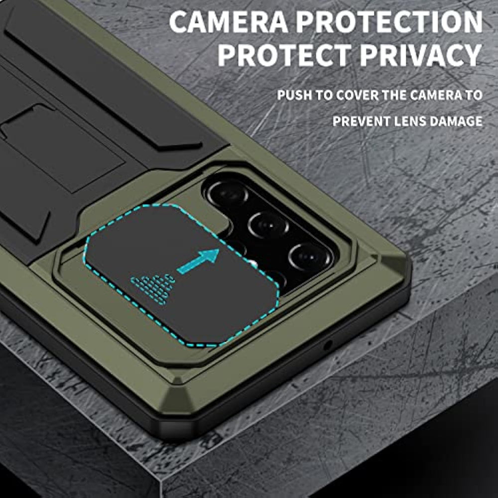 | ?Extreme Outdoor Protection ??This Samsung Galaxy S22 Ultra Rugged Case Is Built For Harsh Conditions, With A Reinforced Tpu Bumper + Metal Frame To Withstand Drops, Dust, And Impacts. | | ?Full-Body Bumper + Raised Edges??The 360° Shock-Absorbent Design Protects Screen, Camera, And Edges. 1.2Mm Raised Lips Prevent Scratches When Placed Face-Down. | | ?Built-In Kickstand For Convenience??The Sturdy Metal Stand Supports Landscape Portrait Mode, Perfect For Streaming, Video