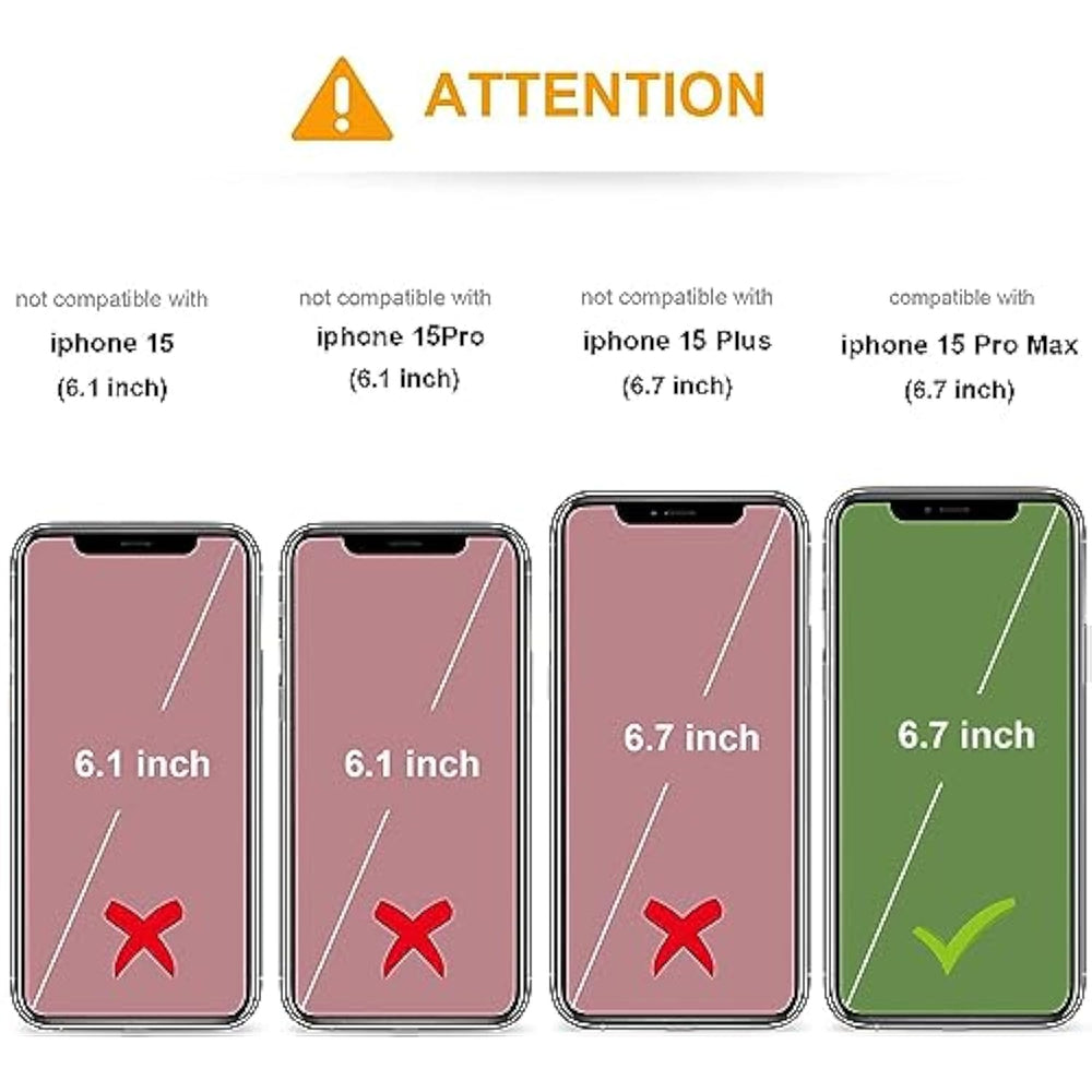 | [Compatibility]: Only Compatible With Iphone 15 Pro Max 6.7 Inch Display (2023 New Released). | | [Premium Leather]: High-Quality Pu Leather (Including The Side) Feels Softer And Looks More Comfortable. | | [Functional Wallet]: 6 Card Slots Securely Hold More Than 4 Cards And Some Cash(Ids, Debit Cards, Credit Cards, Drivers License, Etc.) Without Taking Your Wallet Outside. Magnetic Buttons Can Keep Your Case Slim And Stylish And Keep Your Cash And Cards Secure. | | [Convenient Kickstand]: The Kickstand Function Can Be Converted Into A Multi-Angle Comfortable View For Reading, Watching Videos, Browsing The Web, And Face-To-Face Chatting With Friends Without Purchasing An Extra Bracket. | | [Full-Frame Protection]: 1.5Mm Raised Buffer Edge Prevents Your Phone'S Flat Surfaces From Scratching, The Four Corners Also Protect Your Phone Pro Max From Dropping And Shocking. | |
