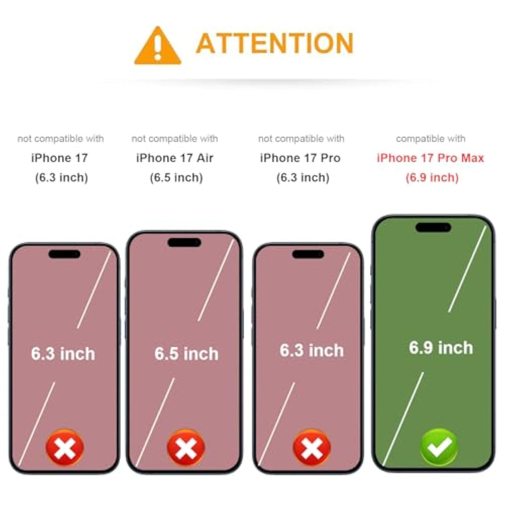 | [Compatibility]: Only Compatible With Iphone 17 Pro Max 6.9 Inch Display (2025 New Released). | | [Premium Leather]: High-Quality Pu Leather (Including The Side) Feels Softer And Looks More Comfortable. | | [Functional Wallet]: 6 Card Slots Securely Hold More Than 4 Cards And Some Cash(Ids, Debit Cards, Credit Cards, Drivers License, Etc.) Without Taking Your Wallet Outside. Magnetic Buttons Can Keep Your Case Slim And Stylish And Keep Your Cash And Cards Secure. | | [Convenient Kickstand]: The Kickstand Function Can Be Converted Into A Multi-Angle Comfortable View For Reading, Watching Videos, Browsing The Web, And Face-To-Face Chatting With Friends Without Purchg An Extra Bracket. | | [Full-Frame Protection]: 1.5Mm Raised Buffer Edge Prevents Your Phone'S Flat Surfaces From Scratching, The Four Corners Also Protect Your Phone From Dropping And Shocking. | |