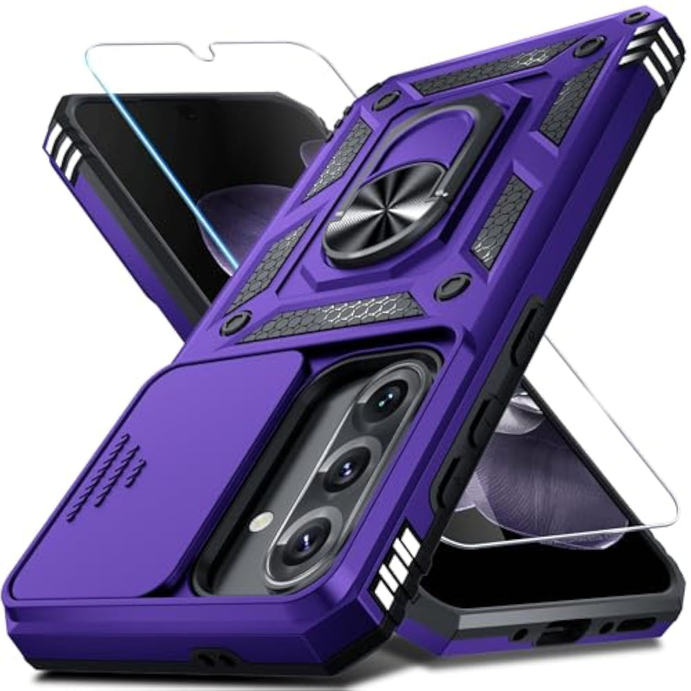 | Durable And Delicate Phone Case? Protective Case Design For Samsung Galaxy A36/A56 5G,Note:Wireless Charging Is Not Supported | | Built In Metal Kickstand?Metal Kickstand 360°Rotation Ring Can Pull Out For Hands-Free Viewing In Portrait Or Landscape Mode. Additional,The Built-In Metal Sheet Can Be Directly Stably Attached To The Magnetic Car Phone Mount | | Dual Layer Protection?The Case'S Shock-Absorbing Tpu Bumper Keep Your Phone Safe From The Occasional Drop,While Its Hard Pc Back Will Protect It From Daily Wear And Tear. Moreover,The Raised Lip Protects Screen And Camera Effectively | | Unique Camera Window?The Sliding Lens Cover And Raised Bezel Protect Your Phone Camera From Scratches. It Can Slide Smoothly Left And Right,Perfect To Hide The Camera. Besides,The Sliding Cover Is Slightly Locked On Both Sides And Can Not Be Slid At Will | | Free Screen Protector?The Case Presents 1 Pack Screen Protector,Hd Clear Scratch Resistant Bubble Free Anti-Fingerpeints Tempered Glass. No Need To Buy The Screen Protector Or Camera Cover Separately | |