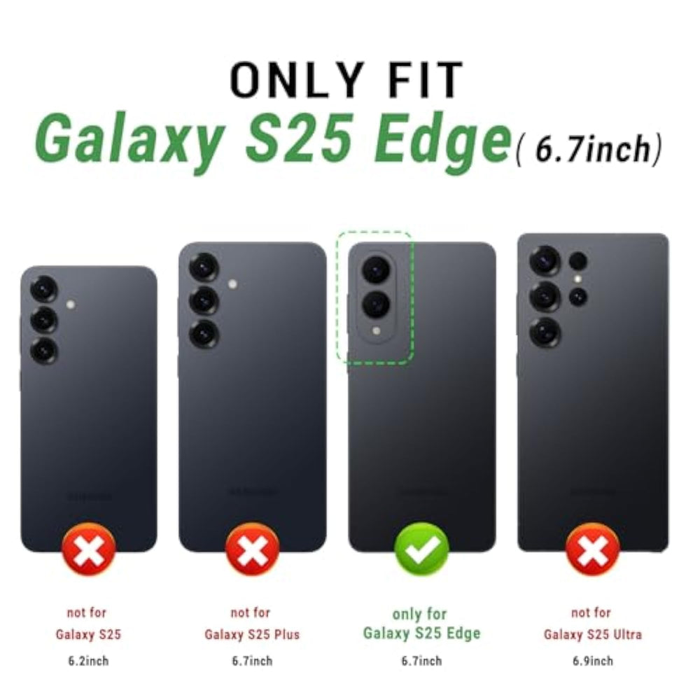 | [The Wallet Case Only Designed Compatible With Samsung Galaxy S25 Edge]---Not Compatible With S25/S25 Fe/S25 Plus/S25 Ultra. If You Need Another Model Leather Wallet Case,Ten Colors To Choice And Real Shoot,Click On The One Next To The Title [Visit The Store] | | [Credit Card Anti-Theft Swipe Function]---This Leather Wallet Case Compatible With Samsung Galaxy S25 Edge Is Designed To Protect Your Cards Information From Stealing With Blocking Material Of Rfid Shielding Technology,Most Credit Cards, Debit Cards, Id Cards Are Set-In The Rfid Chip, The Rfid Reader Can Easily Read The Cards Information Within 10 Feet(About 3M) Without Touching Them | | [Ten Colors To Choice And Real Shoot]---All Images Compatible With Samsung Galaxy S25 Edge Leather Wallet Cases Are In-Kind Real Shoot ,Please Rest Assured That Information To Buy | | [Selected Pu Leather]---- This Wallet Cases Compatible With Samsung Galaxy S25 Edge Made From Selected Pu Leather For Quality, Shockproof,Strength And Durability | | [Large Capacity]---Practical And Stylish. Notes Pocket And Three Card Slots For Store Your Business Cards, Id Card, And Some Notes, Etc | |