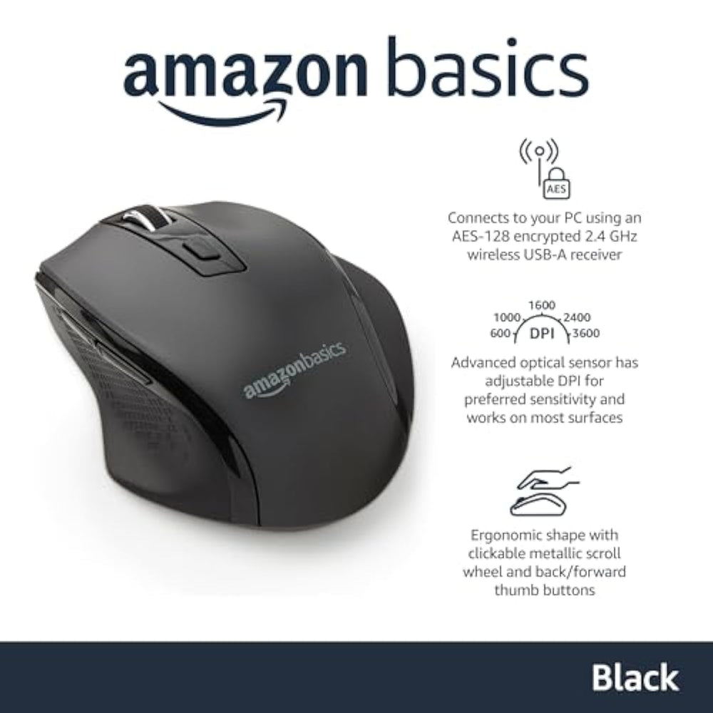 | Comfortable Navigation: The Wireless Mouse Is Designed For Smooth And Easy Computer Interface Navigation, And Provides Ease Of Use For Prolonged Periods Without Strain | | Excellent Compatibility: This Ergonomic Mouse For Pc Is Compatible With Windows 7, 8, And 10 | | Robust Wireless Connection: This Laptop Mouse Has A Stable 2.4 Ghz Connection That Offers A 33-Foot Range To Enable Mobility And Flexibility In Your Workspace Setup | | Secure Data Transmission: Featuring Aes-128 Encryption, This Wireless Computer Mouse Provides Enhanced Security For Your Data, Delivering Safe Usage In Any Network Environment | | Compact Design: This Wireless Mouse For Laptops Measures 4.1 X 2.9 X 1.5 Inches, Making It Compact And Easily Portable | |
