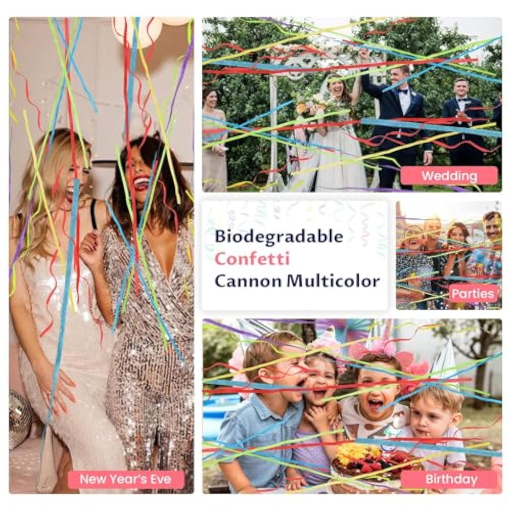 | 12Pack Multicolor Streamer Confetti Cannon: Elevate Your Celebrations With A Box Of 12 Vibrant, Multi-Color Biodegradable Streamer Poppers. Designed For Unforgettable Visual And Photographic Experiences, These Poppers Ensure You Shine At Any Event With A Spectacular Spray Of Streamers That Capture The Joy Of The Moment. | | Eco-Conscious Celebration Tools: Embrace Sustainability With Our 12-Inch Confetti Cannons, Crafted From 100% Biodegradable And Non-Toxic Materials. Enjoy The Colorful Celebration Guilt-Free, Knowing Your Fun Is As Eco-Friendly As It Is Easy To Clean Up. Note: Biodegradability Means Organic Breakdown Over Weeks, Not Instant Water Dissolution. | | User-Friendly Design For Maximum Fun:Unleash Excitement With Ease! Remove The Bottom Packaging, Twist The Compressed Air Device, And Launch A Burst Of Multicolor Streamer Confetti Up To 20 Feet Into The Air. The Loud Pop Captures Attention, While The Streamers Create A Mesmerizing Dance In The Sky. | | Versatile For All Celebrations: Our Confetti Poppers Are The Perfect Addition To Any Occasion, Indoors Or Out. Whether It'S A Graduation, Wedding, Birthday, Holiday, Or Even A Playful Prank, These Streamer Shooters Add A Festive, Fun Energy To Your Gathering, Making Every Event Memorable. | | Safety And Satisfaction: Aim For Safety And Spectacle With Confetti Cannons That Reach 15-20 Feet In Height. Always Point Upwards And Away From People To Ensure A Safe Celebration. Experience Any Issues