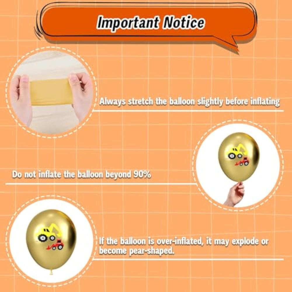 | ?Construction Party Decorations?This 35Pcs 12-Inch Excavator Balloon Pack Includes 7Pcs Gold Construction Vehicle Design Balloons, 7Pcs Yellow Construction Sign Design Balloons, 8Pcs Orange Construction Birthday Design Balloons, 8Pcs Black Construction Design Balloons?5Pcs Black Orange And Yellow Confetti Balloons, And 1 Roll White Ribbon. Great For Construction-Themed Parties, Construction Birthday Party Decorations, Or Excavator Birthday Decorations For Little Builders. | | ?Playful Construction Zone Decortions? Featuring Adorable Construction Vehicle And Sign Designs, These Balloons Will Add A Touch Of Fun To Your Party. They Are Easy To Set Up And Customize. Simply Inflate The Balloons With Helium Or Air, Tie Them To The Included Ribbon. Great For Construction-Themed Parties, Birthday Parties, Truck Birthday Party Decorations, Construction Vehicle Enthusiast Events, Classroom Decorations, Or Any Celebration! | | ?Premium Quality? Composed Of Outstanding Latex, These 12-Inch Construction Themed Party Supplies Balloons Are Long-Lasting,And Safe For Children. It Can Be Filled With Air And Helium. Yellow And Black Balloons Can Also Be Paired With Other Colors To Fit Indoor And Outdoor Events Like Construction Birthday Party, Graduations, And Truck Baby Showers, Making Them A Safe And Responsible Choice For Your Celebrations. | | ?Various Occasions? Construction Vehicle Design Balloons Make Them A Great Choice For Both Casual And Themed Gatherings, Such As Construction-Themed Birthday Parties, Birthday Balloons For Boys, Construction Vehicle Enthusiast Events, Building Block Parties, Or Any Celebration Decorations. You Can Use Them As The Centerpieces Of Your Construction Birthday Decorations Or Combine Them With Other Party Supplies To Create A Fun And Engaging Atmosphere For Your Little Builders’ Special Day. | | ?Friendly Reminders?Keep Yellow And Black Balloons Away From Sharp Objects, Rough Surfaces, And Direct Sunlight To Prevent Damage. To Ensure The Balloons Last, Store Unused Balloons In A Cool, Dry Place. We Are Always Committed To Providing Outstanding Balloons And Party Supplies. If You Encounter Any Problems While Using Our Construction Birthday Party Supplies, Our Professional