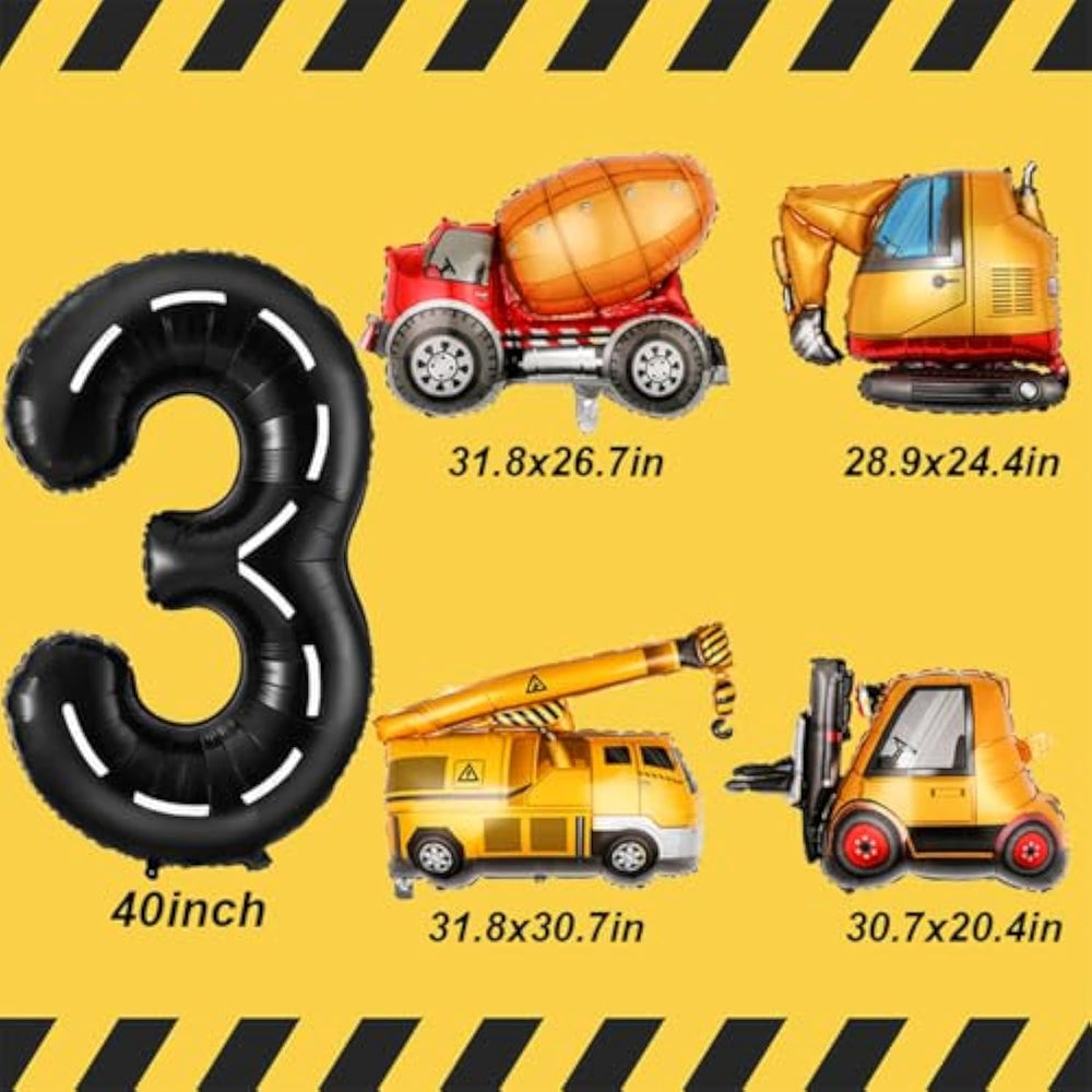| ?3Rd Construction Party Decorations?Birthday Construction Balloons Set Include 1Pcs 40Inch Racetrack Black Balloon Numbers 3,1Pcs Large Foil Excavator Balloon, 1Pcs Mylar Foil Crane Balloon, 1Pc Large Foil Forklift Truck Balloon,1Pc Large Cementing Truck Foil Balloon, 2Pcs Round Foil Happy Birthday Construction Balloons, 1Pc Ribbon And Straw.These Construction Balloons Will Make A Cool Construction Themed Birthday Party For Your Boy. | | ?High Quality And Safety Material?Our 3 Year Old Birthday Decorations Boy Construction Balloons Made Of High-Quality Aluminum Foil Mylar Material, Which Can Stand The Long-Hour Display And Reusable, Non-Toxic And Harmless For Construction Theme Birthday Party. | | ?Construction Party Supplies?These Constuction 3Rd Birthday Decoration Balloons Are Perfect For Construction Themed Party Supplies,Construction Birthday Decorations,Construction Baby Shower Decorations,Truck Themed Birthday Party Supplies,Excavator Birthday Decorations,Etc.The Cool Constuction Balloon Kit Is Perfect For Your Boy'S Birthday Party As A Single Decoration. | | ?Easy To Use?Construction Balloon Are Self-Sealing And Require No Knotting.Ballons Can Inflate With Both Helium Or Air,Which Can Quickly Arrange A Cool Construction Theme Birthday Party For Your Boy. | | ?