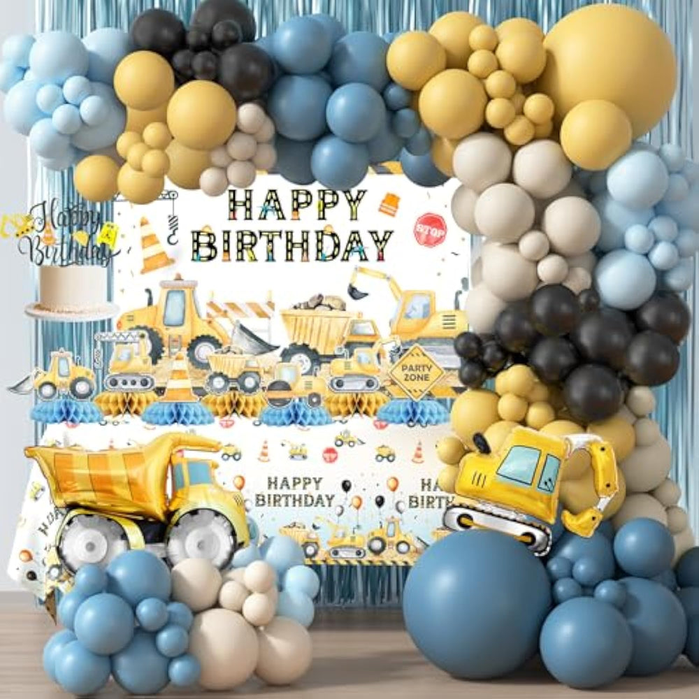 | Construction Birthday Party Decorations - Package Includes: Construction Birthday Backdrop, Construction Table Cloth, 7Pcs Construction Honeycomb Centerpieces, 120Pcs Construction Balloon Garland Set, 2Pcs Foil Fringe Curtains, Construction Cake Topper, 16Pcs Construction Cupcake Toppers, Excavator Balloon, Dump Truck Balloon. | | Premium Quality Best Bang For Your Buck - Our Construction Birthday Decorations Are Made From Premium Quality Materials. Everything You Have Ever Thought Of For Your Birthday Party Is Now In This Set, Eliminate The Need To Go-Shopping For Individual Elements (Otherwise Ending Up Spending More Money And Wasting More Time). Moreover, Superior Print Quality And High Attention To Details Are Sure Make Your Party Stand Out. | | Easy To Assemble - You Will Find It Much Easier To Make A Balloon Garland With The Tools We Provided. Tie The Inflated Balloons, Thread Balloon Knots Through The Hole Of The Strip And Glue The Smaller Balloons On; Super Easy To Create A More Richer Balloon Garland Effect, And No Experience Is Required. | | Attention - Please Use An Electric Or Hand Pump To Inflate The Balloons, Do Not Inflate The Balloon More Than 90% To Avoid Sudden Popping. Balloon Colors May Vary From Different Monitors And Screens. If It’S Super-Hot, Balloons Will Oxidize And Lose Their Shine. This Is Not A Bad Thing; It Merely Changes The Visual Texture Of The Balloon. The Balloons Will Look More “Velvety” And Acquire A Rich Matte Finish. I Do Not Recommend On Direct Sunlight Exposure! | |
