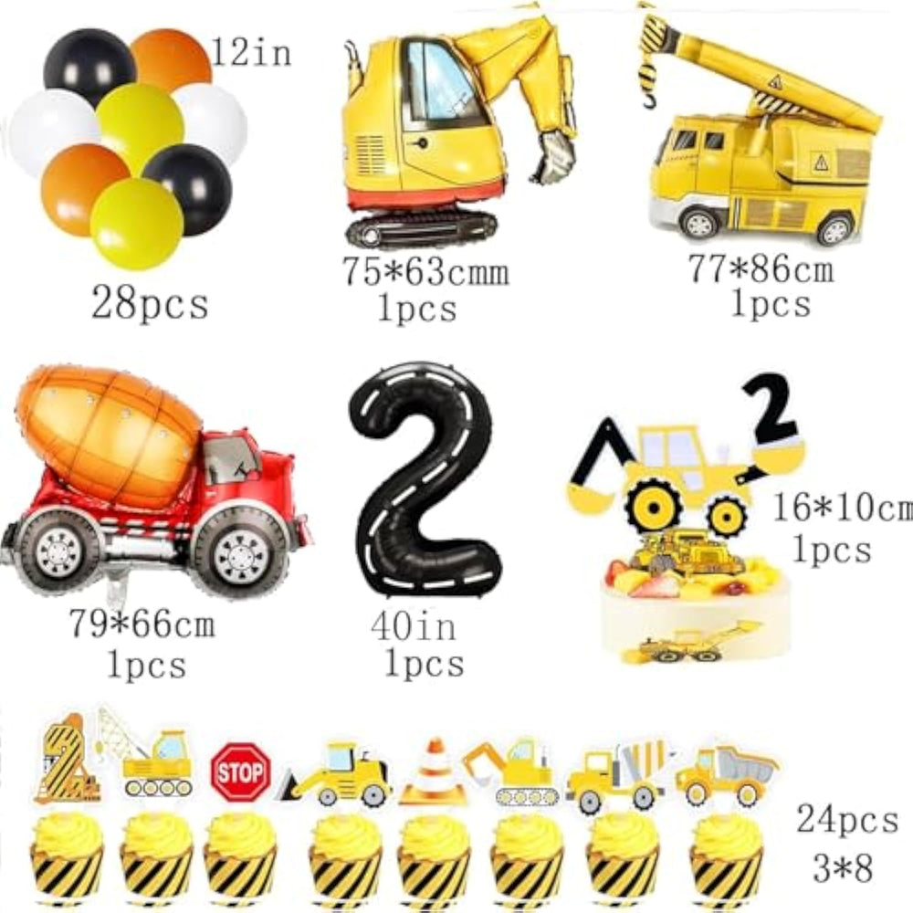 | What You Get: 1 Birthday Banner, 1 Set Of 2 Year Old Pull Up Period, 1Pcs Backdrop, 1Pcs Birthday Hat, 1Pcs Tablecloth, 3Pcs Engineering Truck Aluminum Film Balloons, 40 Inch Black Number 2,28Pcs 12 Inch Latex Balloons, 1Pcs High Chair Table, 1Pcs Birthday Cake Insert. | | These Construction Birthday Decorations Are Perfect For A Great 2 Year Old Construction Themed Fan Birthday Party. High Quality Balloons Are Not Easy To Break And Are Safe For Kids | | If You Have Any Questions, Please Feel Free To