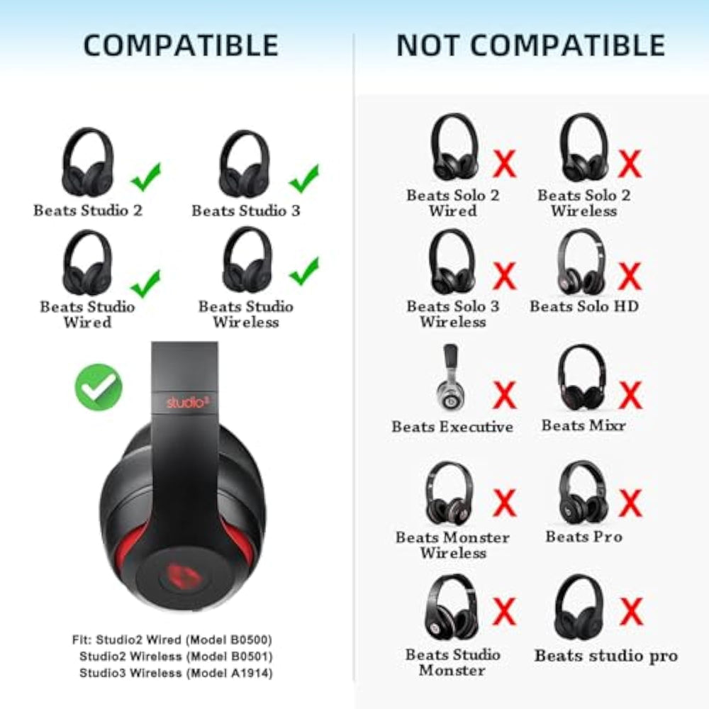 | ?Compatibility?Compatible With Beats Studio 3 Wired Wireless Over-Ear Headphones,Beats Studio 2 Wireless ( Model B0501 ),Studio 2 Wired ( Model B0500 ),Do Not Fit Beats Solo?We Have Listed All The Compatible Models In The List For Your Reference. | | ?Keep Your Ears Cool?The Cooling Soft Gel Layer Is Made With A Combination Of Breathable Sports Fabric To Keep Your Ears Cool For A Long Time, And Your Ears Won'T Feel “Stuffy” After Long Periods Of Wear Like They Do With Hyperx'S Original Ear Cushions. | | ?Comfortable Experience? Made Of High-Density Memory Foam, Soft And Comfortable, Effectively Dispersing Ear Pressure, All-Weather Wear, Excellent Noise Isolation Ability, Effectively Blocking External Noise, Even In A Noisy Environment Can Also Enjoy Pure Sound Quality. | | ?Time To Replace Your Old Earbuds?Why Not Give Your Earbuds A New Look Don'T Worry About Not Being Able To Install Them, We Provide An Installation Tutorial! | | ?Simple And Easy To Install? We Will Provide You With An Installation Video And Installation Instructions So That You Can Easily Replace The Ear Cushions, Making The Entire Installation Process Quick And Easy (Usually Only Takes 5 Minutes). | |