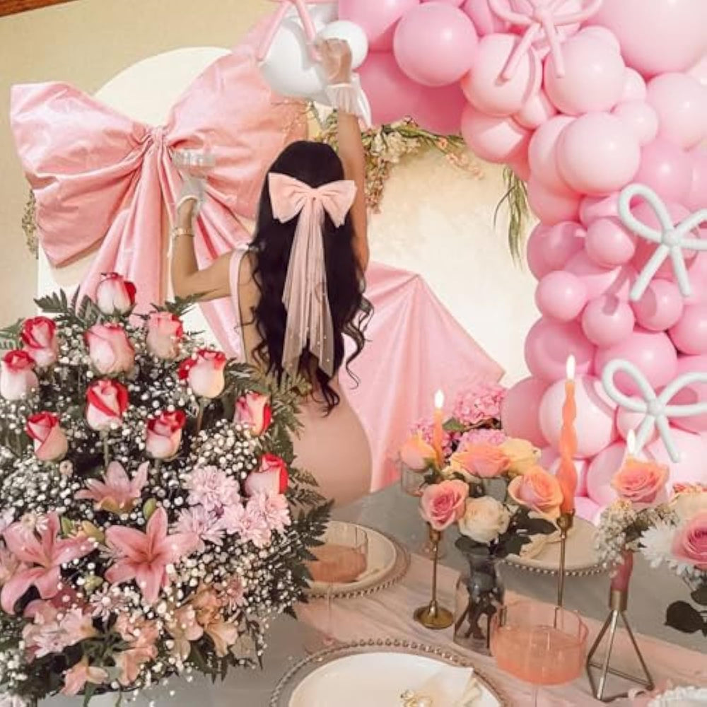 | Package Includes: The Pink Balloon Arch Kit Includes 149 Balloons: 1 Bow Foil Balloon, 2 Large 18" Balloons, 60 Medium 10" Balloons, And 70 Small 5" Balloons Made Up Of Three Colors: (Pink, Light Pink And White), Plus 16 Long Balloons For Crafting Elegant Bow Balloons, And Some Accessories. | | Versatile Decorations: Perfect For Coquette Birthday Decorations, The Bow Birthday Decorations Set Suits 13Th, 16Th, 18Th, 21St, 25Th, 30Th, 40Th, 50Th, And 60Th Birthdays, Adding A Stylish Touch To Celebrations For Women And Adults. | | Premium Quality: Made From High-Quality Materials, Pink Bow Birthday Decorations Offer Vibrant Colors And Durability. The Pink And White Tones Blend Beautifully, Ensuring A Sophisticated And Eye-Catching Display. | | Perfect For Various Events: The Pink Balloon Arch Kit Is Ideal For Birthdays, Baby Showers, Weddings, And Special Events. The Charming Bow Balloons Create A Dreamy, Elegant Atmosphere, Making Any Celebration Unforgettable. | |
