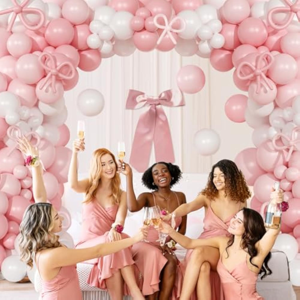 Create a dreamy celebration with this coquette birthday decorations kit featuring a stunning pink and white balloon arch with 145 pieces designed to transform any party space. Perfect for birthdays weddings and special events the whimsical bow balloon arch adds an elegant touch that complements any theme. Made from high quality materials these vibrant and durable balloons ensure a beautiful display that lasts throughout the festivities. Easy to assemble with clear instructions this kit is perfect for both beginners and experienced decorators making it simple to create a show stopping backdrop for your celebration.