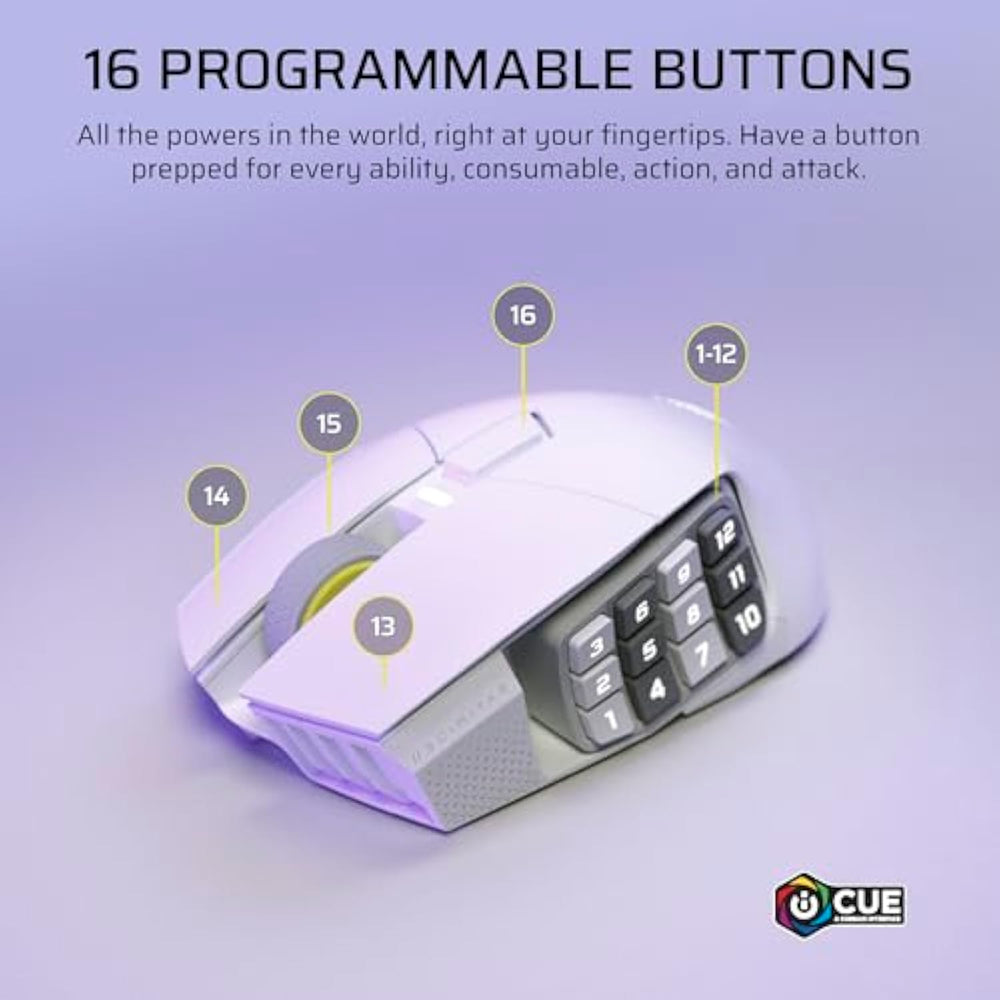 | Phenomenally Precise 33k DPI MARKSMAN S: Hit headshots, scan the entire map, ping teammates all with amazing accuracy thanks to the MARKSMAN S 33k DPI optical sensor. With improved DPI detection, IPS tracking, and lower power consumption over the previous version, it’s definitely a worthy upgrade | | 16 Programmable Buttons: All the powers in the world, right at your fingertips. Have a button ready for every power, consumable, action, and attack with 16 programmable buttons | | Elgato Stream Deck Integration: Native Elgato Stream Deck integration allows you to directly map Stream Deck functions to the SCIMITAR ELITE WIRELESS SE from the Stream Deck App, so your most important functions are just a button away | | Elgato Virtual Stream Deck Integration: This mouse can also utilize Elgato’s Virtual Stream Deck integration to give your 16 buttons more functionality than ever. Map buttons to their own Virtual Stream Deck to build out profiles for productivity, gaming, streaming, and more | | Fast, Low-Latency Wireless Freedom: Ditch the cords and the lag. SLIPSTREAM WIRELESS offers a low-latency connection on PC or Mac with 1,000Hz polling. Alternatively connect via Bluetooth or USB to charge while you play | |