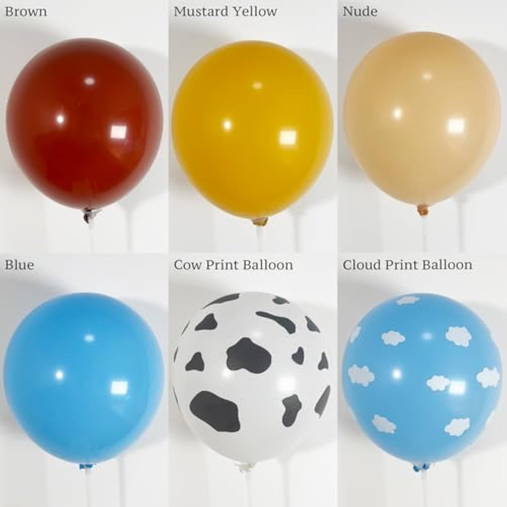 ?Comprehensive Cowboy Themed Balloon Arch Kit?: This Balloon Garland Kit Includes A Variety Of Balloons In Different Sizes: 2Pcs 18" Balloons, 36Pcs 12" Balloons, 50Pcs 10" Balloons, 40Pcs 5" Balloons. Colors Include Brown, Nude, Mustard Yellow, Blue, Cloud Print, And Cow Print. Each Balloon Is Rigorously Tested For Durability, Ensuring They Are Safe And Long-Lasting. | ?Versatile Party Decorations?: Whether You'Re Planning A Cowboy Baby Shower, A Farm-Themed Birthday, Or A Toy Theme Event, This Balloon Set Is Perfect For Adding A Festive Touch. The Cow Print Balloons And Cowboy-Themed Colors Bring A Fun And Rustic Vibe To Your Decorations, Suitable For Both Indoor And Outdoor Settings. This Versatile Set Is Ideal For A Wide Range Of Events, From A "A Little Cowboy Is On The Way" Baby Shower To A First Rodeo Birthday Celebration. | ?Effortless Assembly?: Our User-Friendly Kit Comes With All The Necessary Tools, Including A Clear Balloon Strip, Dot Glue, And A Decorative Ribbon, Making The Assembly Process Smooth And Enjoyable. Even If You'Re New To Balloon Decorations, You'Ll Find Setting Up Your Decor A Breeze. This Kit Allows You To Unleash Your Creativity And Build A Beautiful Balloon Arrangement. | ?High-Quality?: Crafted With Premium Materials, Our Balloons In The Kit Stand Out For Their Durability And Vibrant Colors. Whether For A Birthday Party Or Any Celebratory Event, These High-Quality Latex Balloons Resist Popping And Fading, Ing A Stunning Display That Leaves A Lasting Impression On Your Guests. | ?