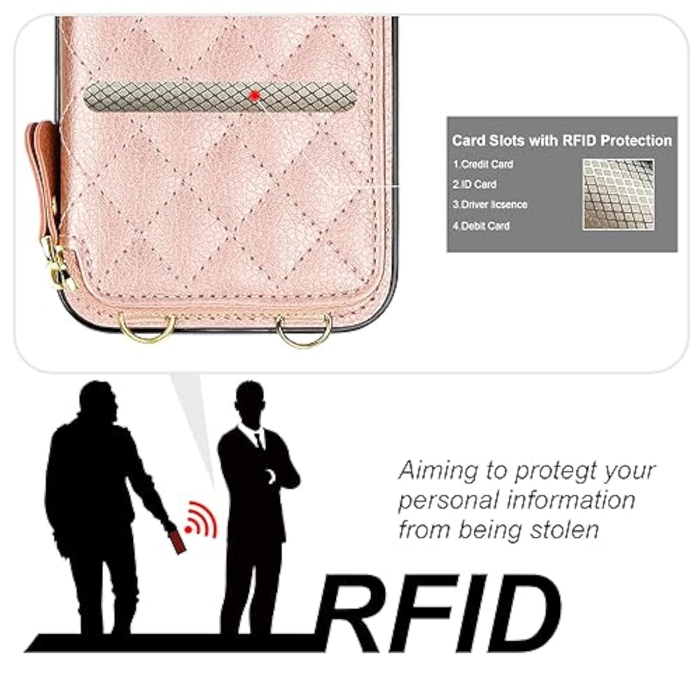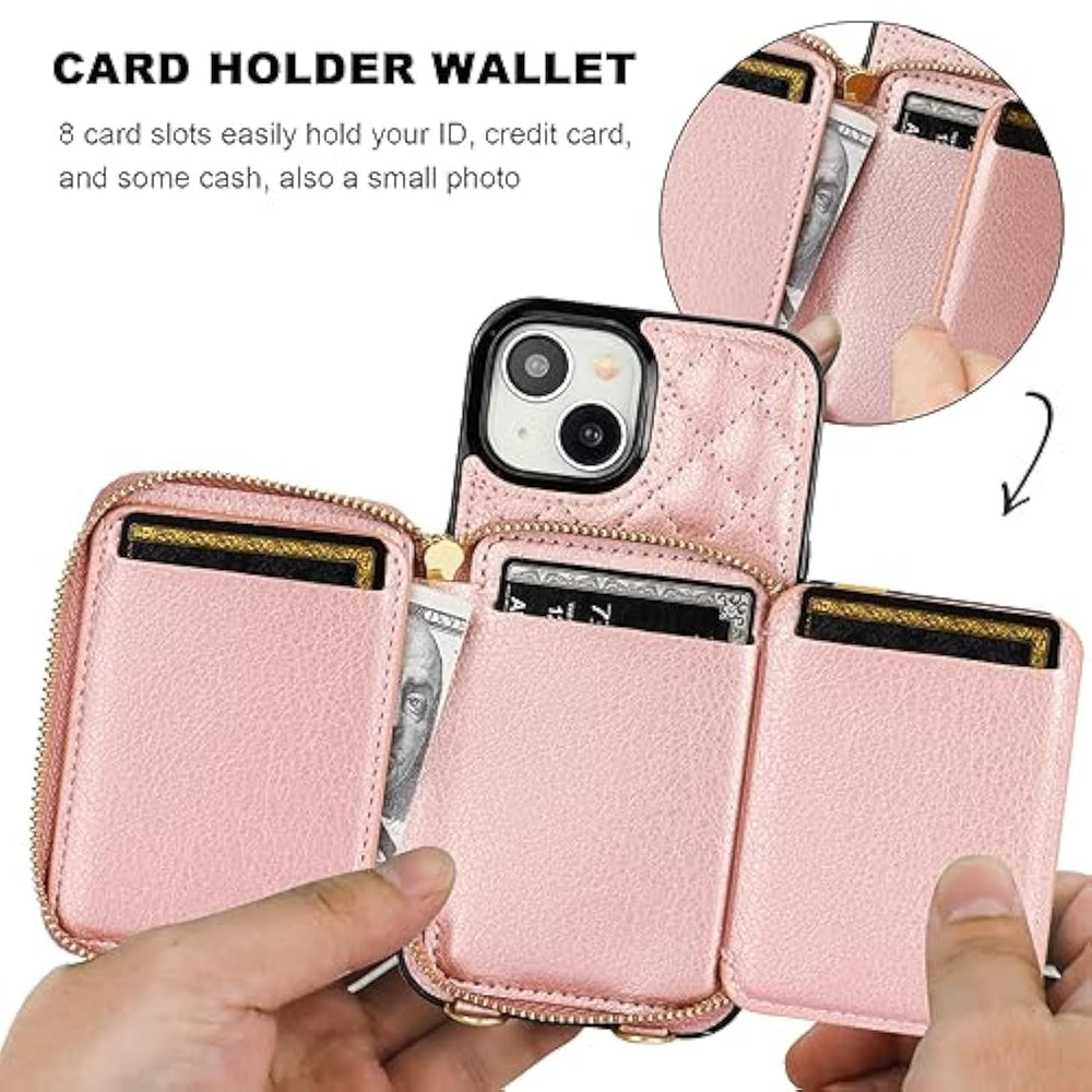 | ?Compatibility?: This Purse Case Is Only Fit For Iphone 15 (6.1 Inch Display), Not Compatible With Other Phone Models. Please Check Your Phone Model First Before Placing An Order. | | ?Large Capacity Wallet Case?: This Folio Case Wallet Is Equipped With Many Card Slots As Well As A Cash Pocket For The Storage Of Little Money And Various Cards Such As Id Card, Debit Card, Driver'S License, And So On. What'S More, The Zipper On The Cross Body Case Wallet Can Ensure The Safety Of Your Belongings. | | ?Rfid Blocking Material??The Information Data In The Chips Of Your Cards Can Be Read And Copied By Rfid Technology Through Radio Signals. In This Case, Your Cards Are Not Safe Enough Even Though They Are In Your Pocket. Rfid Block Material Applied To Our Purse Case Can Effectively Avoid Such Problems And Keep Your Cards Safe. | | ?Detachable Crossbody And Wrist Strap?: The Removable Shoulder Strap Of The Flip Purse Case Is Adjustable From 30 Inches To 55 Inches, For Which You Can Adjust A Proper Length As You Like. Besides The Anti-Lost Lanyard, A Detachable Wristlet Will Come With The Flip Case With Card Holder, Which Offers You Different Ways To Use This Leather Wallet Case. | | ?Practical Kickstand Feature Fashionable Look?: The Stand Function Helps Free Your Hands. And The Diamond Pattern Is Cute And Exquisite In Look. Besides, Precise Cutouts Allow Easy Access To Side Buttons While Round Corners Provide A Comfortable Grip. | |