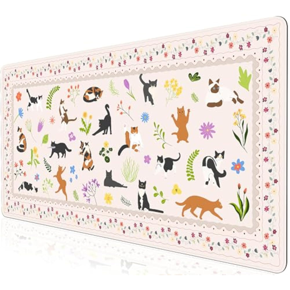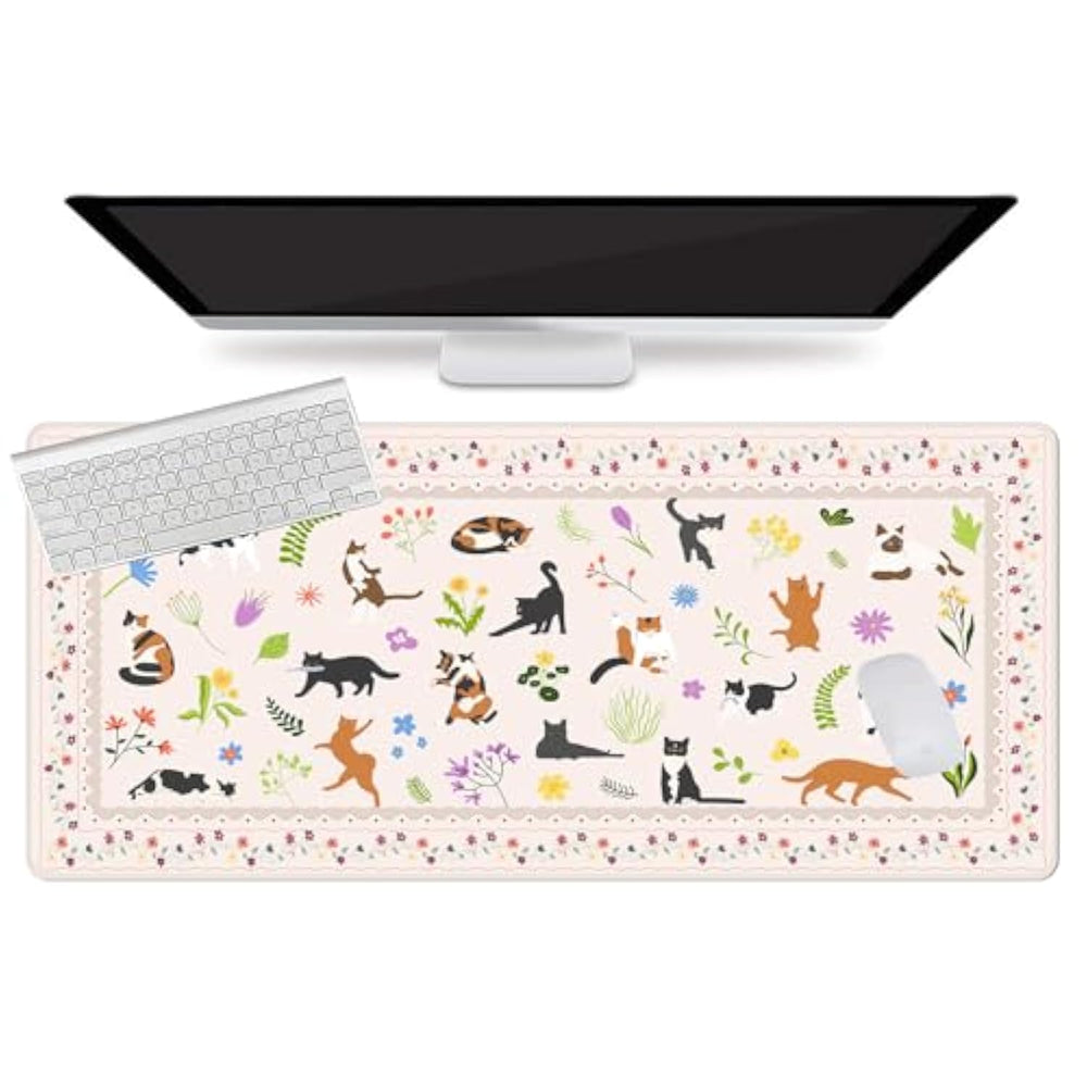 | Cute Cats Aesthetic Design: The Boho Cat Desk Pad Mat With Exquisite Stitched Edges For Wear Resistance And Durability,Adding A Touch Of Elegance To Your Desktop.For Women Who Love Cat And Floral Aesthetics | | Large Desk Pad Size: Xxl Mouse Pad Measures 35.4" X 15.7",This Cute Cat Desktop Mat Provides Ample Space For Your Mouse,Gaming Keyboard,And Other Desktop Essentials.Its Large Size Of Desk Cover Mat Keeps Your Workspace Neat And Organized, Perfect For Both Gaming And Office Use | | Ultra-Smooth Surface: The Mouse Pads For Desk With Comfortable Lycra Surface And Breathable Material.It'S Flexible Enough To Be Rolled Up For Easy Transport.You Can Flexibly And Precisely Control The Mouse Movement Speed During Your Working Or Gaming.It'S Compatible With All Mouse Types,Including Mechanical,Wireless,And Optical Mice.It Can Protect Your Desktop,Laptop,Keyboard,Mouse | | Non-Slip Rubber Base: The Anti-Slip Rubber Base Design Increase Friction Resistance With The Desktop,Effectively Prevent The Mouse And Keyboard From Sliding And Moving For Stable Operation, Keeps The Kawaii Cat Boho Computer Mat Securely In Place.Works Well On All Types Of Desks Including Wood, Glass, Leather, Metal, Marble Desk And More.Even In The Most Intense Gaming Process, The Gaming Mouse Pad Can Be Firmly Placed On The Desktop | | Waterproofeasy To Clean: Cute Large Desk Pad Equipped With A Waterproof Coating,Girly Kawaii Desk Matt For Desktop Resists Liquid Spills.The Computer Mat For Desk Is Washable: Hand Wash Or Machine Wash.Water Resistant And Heat Resistant Material Makes This Gaming Mouse Pad Easy To Clean.Simply Wipe The Surface Of The Desk Mouse Pad With A Wet Cloth.The Desk Cover Protector Will Air Dry Quickly In Its Natural State And Is Ready To Use After Air Drying | |
