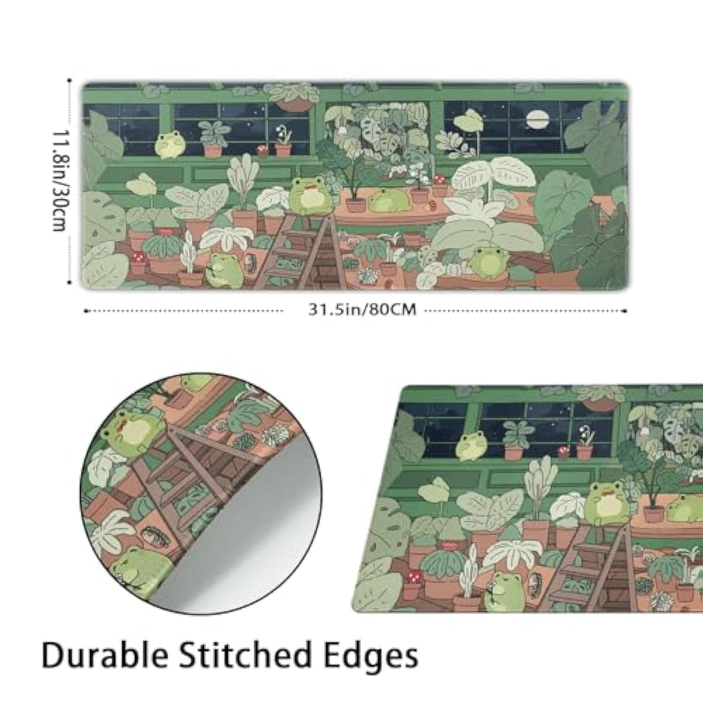 | ??Large And Perfect Size?: The Mouse Pad Is Large Enough, 11.8" X 31.5" (30Cm X 80Cm) And 3Mm Thick. The Mouse Pad Will Fit Perfectly On Your Desktop, Providing The Perfect Room To Move Around. The Extended Xl Mouse Pad Is Large Enough To Hold A Mouse, Gaming Keyboard, And Other Desktop Items While Protecting Your Desktop. | | ??Ultra Smooth Surface?: Frog Mouse Pad Is Designed With Microfiber Woven Material. The Smooth Surface Will Provide Smooth Mouse Control And Precise Positioning, Allowing You To Maintain Excellent Speed And Control During Work Or Gaming. The Waterproof Surface Prevents Damage From Spilled Beverages Or Other Accidents. | | ??Non-Slip Rubber Base?: The Compact Anti-Slip Rubber Base Can Firmly Grasp The Desktop, Effectively Prevent The Mouse And Keyboard From Sliding And Moving, And Provide Stable Operation Of The Keyboard And Mouse. | | ??Durable Sewed Edge?: The Durable Stitched Edge Mouse Pad Will Not Fray Or Deform During Use. The Stitched Frame Ensures It Doesn'T Fray Or Unravel Like Other Mouse Pads. | | ? ?Washable And Rollable Portable?: Easy To Clean, If You Accidentally Spill A Drink Or Other Food On Your Mouse Pad, Just Clean It With A Cleaning Cloth. Durable And Lightweight Design Can Withstand Years Of Use And Is Easy To Carry. | |