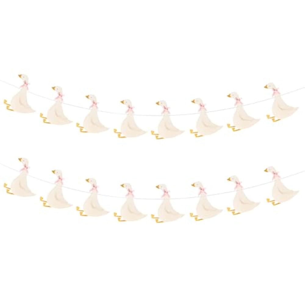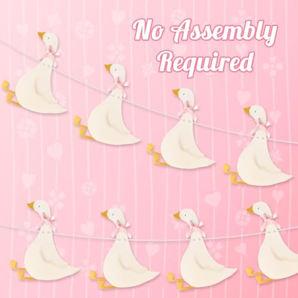 | Package Contain: Includes 2 Pre-Assembled Banners, Each Featuring 10 Cute Cartoon Baby Goose Cutouts With Pink Bow Ties. Instantly Adds Charm To Any Party—No Setup Needed! Great For Baby Showers, Gender Reveals, Birthdays, And Nursery Decor. Lightweight And Easy To Reuse Or Store For Your Next Event. | | Lovely Goose Design: Each Cutout Showcases A Sweet Baby Goose With A Pink Ribbon Bow Tie—Great For Adding A Cheerful, Whimsical Touch. Idea For Baby Showers, Little Girl Birthdays, And Themed Parties. A Fun Way To Create Cute Photo Backdrops And Delight Your Guests. | | Suitable Size Premium Quality: Each Goose Cutout Measures 5.9 X 5 Inches, With Banners Stretching 78.7 Inches Long. Made Of Sturdy, Lightweight Cardboard, They’Re Reusable And Easy To Hang. Foldable For Simple Storage And Transport—Great For Decorating At Home, Party Venues, Or Outdoor Spaces. | | Ready To Use — No Diy Needed: No Assembly Required! These Cute Goose Banners Come Pre-Strung And Ready To Hang, Saving Busy Hosts Time And Effort. Quickly Decorate Walls, Windows, Or Party Tables And Create A Standout Atmosphere Without The Hassle Of Crafting Or Setup. | | Versatile Application: Suitable For Girls' Birthdays, Baby Shower, Gender Reveal Party, Weddings, Slumber Parties, Pool Parties And Graduations. Hang Them Over Dessert Tables, On Walls, Windows, Fireplaces, Patios, Or Entryways. Add A Festive, Tropical Touch To Any Event—Indoors Or Outdoors—And Make Every Occasion Extra Special! | |