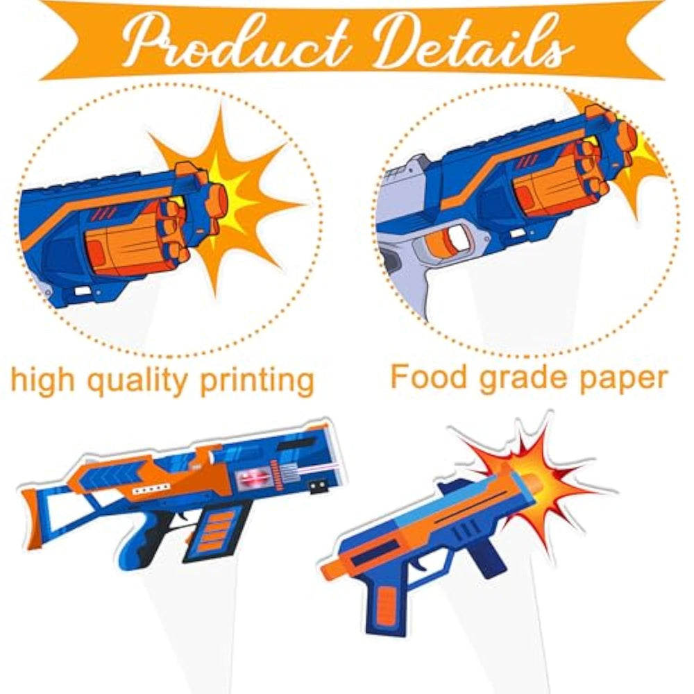 | Dart War Party Cupcake Toppers: 48 Pieces Of Dart-Themed Cupcake Toppers Featuring Various Designs Including Targets, Blasters, Tactical Vests, And Celebratory Messages | | Dart War Party Decorations?Double-Sided Toppers With Front And Back Printing, Including Special Numbered Designs Perfect For Birthday Celebrations | | Dart Birthday Party Cake Decorations?Made With Food-Grade Paper And High-Quality Printing For Safe