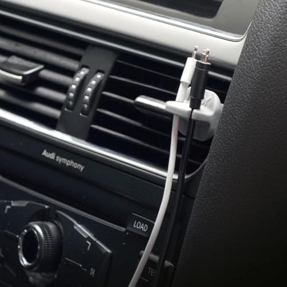 | Universal Compatibility – Flexible Rubber Fins Fit Most Car Vents, Ensuring Easy Installation And Wide Compatibility Across Various Vehicle Models. | | Dual Cable Slots – Securely Holds Up To Two Charging Cables, Keeping Them Organized And Within Reach For Convenient In-Car Charging. | | Scratch-Free Design – Soft Rubber Fins Protect Your Car Vents From Scratches While Maintaining A Firm, Non-Damaging Grip. | | Durable Easy To Install – Built With High-Quality Materials For Long-Lasting Use; Installs Quickly With No Tools Required. | | Compact And Space-Saving Design: Despite Its Compact Size, This Organizer Maximizes Space Efficiency, Helping To Declutter Your Dashboard While Ensuring Your Cables Remain Neatly Organized And Easily Accessible. | |