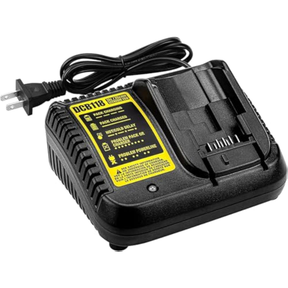 ?Rplacement Charger For Dewalt Dcb118 Chargers, It Charges All 12V Max And 20V Max Li-Ion Batteries, 3A Output Fast Charger. Brand New Condition. | | ?Compatible With 12V / 20V Max Li-Ion Dcb208 Dcb206 Dcb203 Dcb204 Dcb201 Dcb200 Dcb230 Dcb240, Dcb120 Dcb127 Battery. Replace For Dcb112 Dcb115 Dcb118 Dcb107 Dcb105 Dcb102 Charger. | | ?Built-In Multiple Charging Protection: Over-Current, Overcharge, High Temperature, High Voltage, Short Circuit Protection, Efficient Charging While Effectively Protecting The Battery, And Can Also Avoid Safety Accidents. | | ?Led Indicator Light Indicates The Battery Status: The Red Light Flashes Means The Battery Is Charging, The Red Light Is Always On To Indicate That The Battery Is Fully Charged, And The Red And Yellow Lights Flash Together To Indicate That The Battery Failure. | | ?Input Voltage 100-240V/Ac; Output 12V-20V, 22V Maximum; Output Current 3A; Improve Charging Efficiency And Shorten Charging Time. | | Input Voltage 100-2.