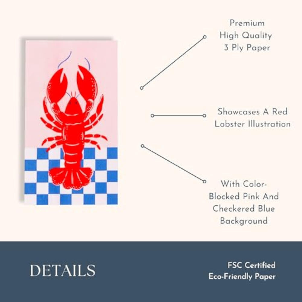 | Coastal-Inspired Lobster Design: Make A Splash At Your Next Gathering With Our Le Lobster Guest Towels. Featuring A Bold Red Lobster Illustration And Classic Blue Text On Crisp White Paper, These Towels Bring Nautical Charm And Cheeky Elegance To Summer Entertaining. | | Perfect For Seafood Boils, Beach Parties Nautical-Themed Events: Whether You'Re Hosting A Lobster Bake, Fourth Of July Celebration, Or Coastal Brunch, These Guest Towels Are The Perfect Addition To Your Table Or Powder Room. They Double As Stylish Napkins Or Disposable Hand Towels For Guests. | | Durable Absorbent 3-Ply Paper: Crafted From High-Quality 3-Ply Paper For Strength And Softness. These Disposable Towels Hold Up Well To Spills And Sticky Fingers, Making Them Both Functional And Festive. | | Elevated Entertaining With Bonjour Fête: Designed In The Usa And Inspired By French Coastal Style, These Towels Combine Playful Illustration With Premium Quality—Perfect For Hosts Who Appreciate Thoughtful Details And A Well-Dressed Table. | | Pack Of 20 Guest Towels (Approx. 8" X 4.25" Folded): Includes 20 Guest Towels In A Folded Rectangular Shape, Ideal For Bathroom Use Or Buffet-Style Meals. Printed With Food-Safe, Non-Toxic Ink On Fsc-Certified Paper. Not Microwave-Safe. | |